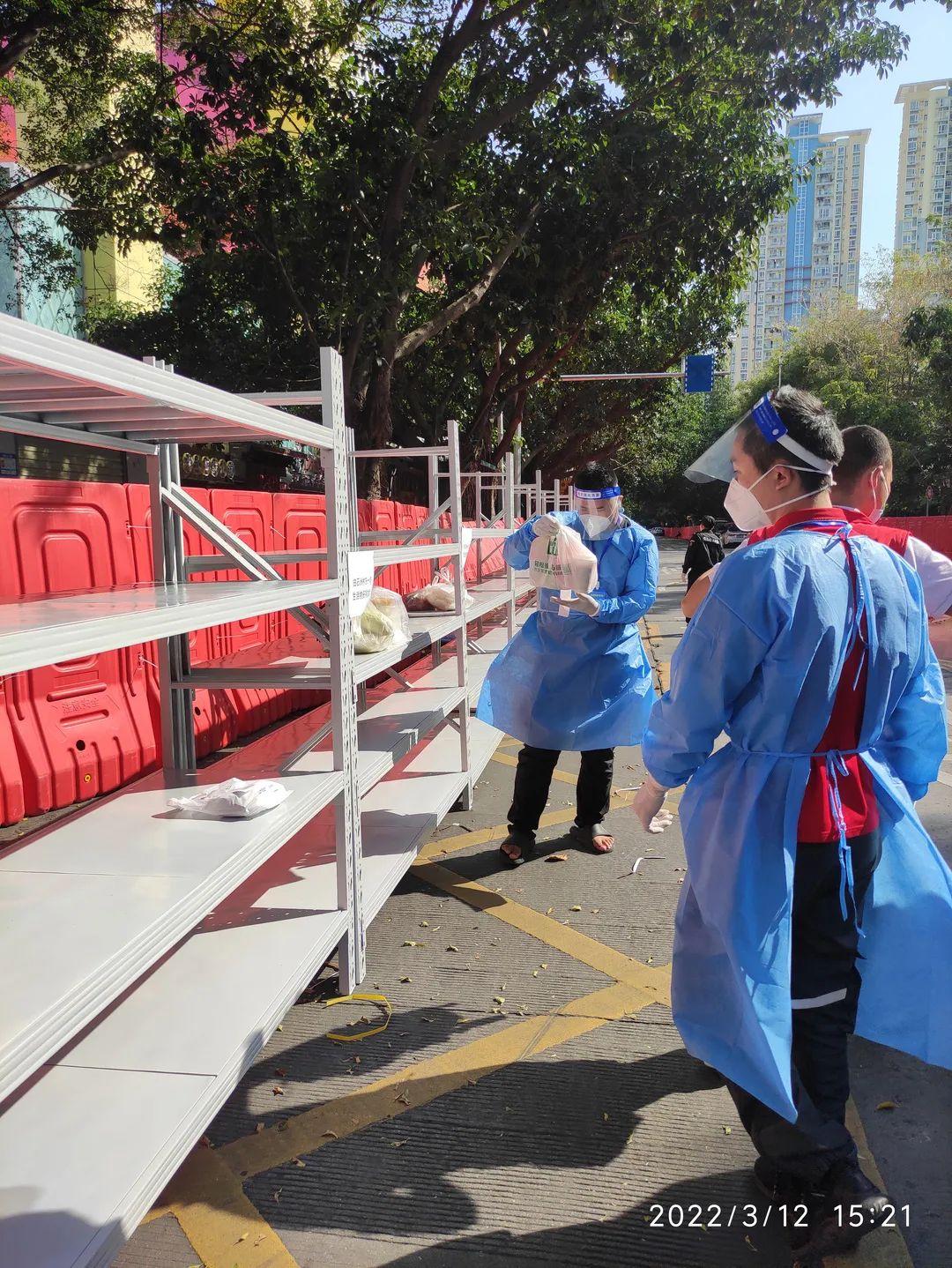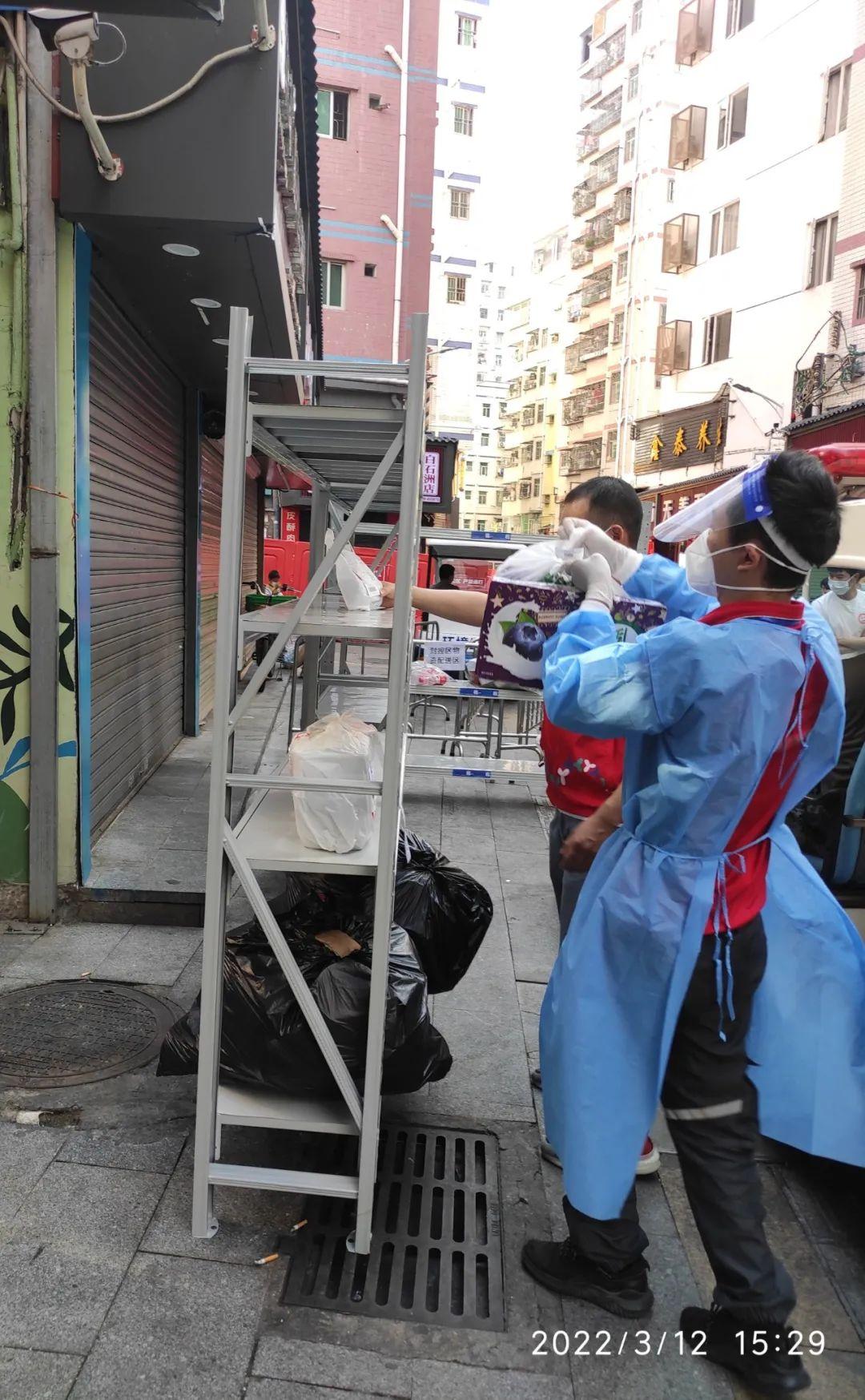 南山区工商联(非公党委)在第一时间动员会员企业及企业党组织向居住及滞留在白东3区的小哥骑手援助生活物资和防疫物资,区快递物流供应链联合党委和人人乐党支部也迅速采购输送物资到驿站为骑手小哥提供补给。