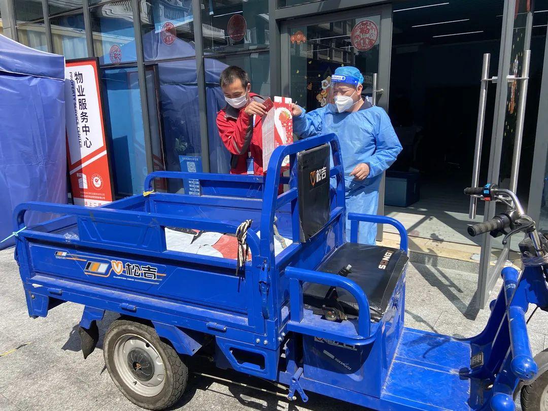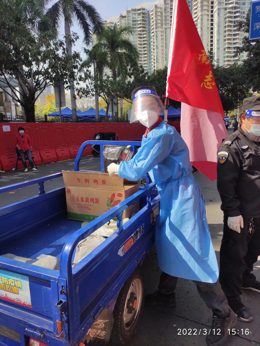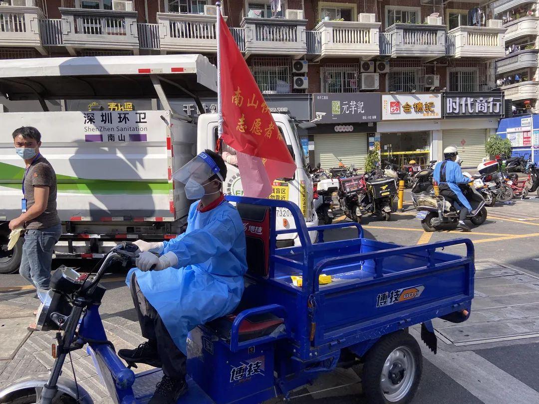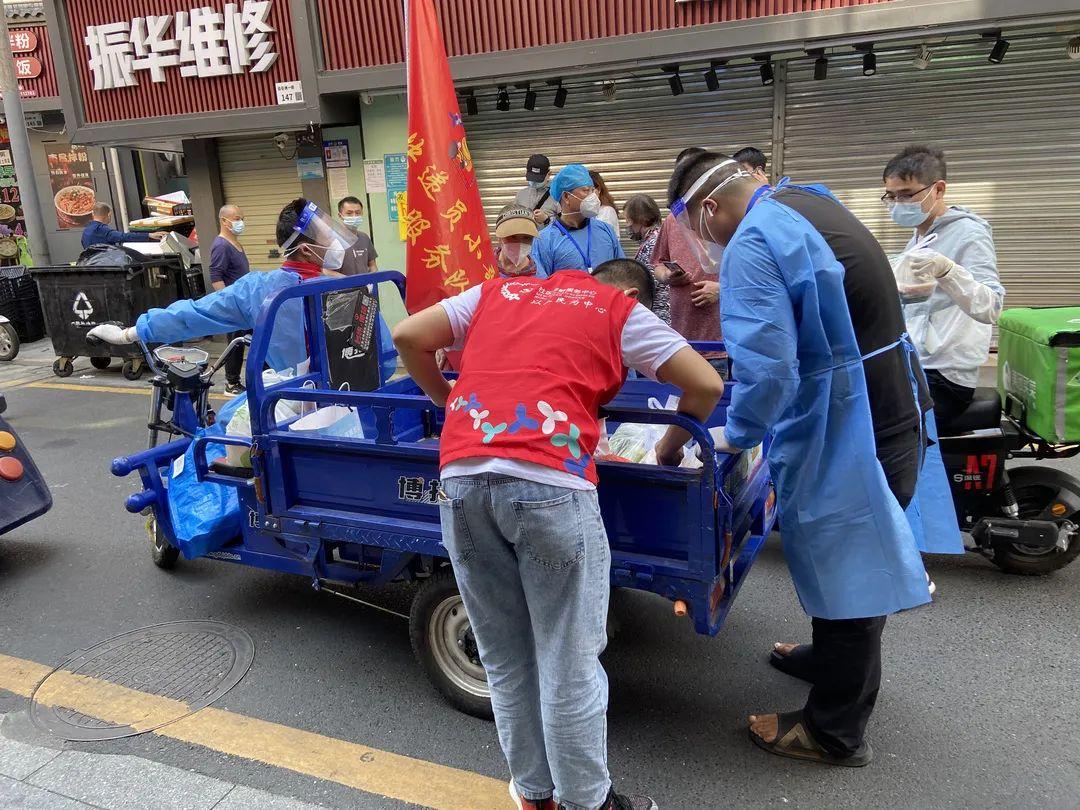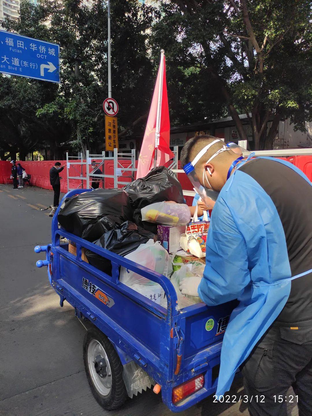 △图:南山快递员小哥志愿者服务队有条不紊运输生活物资
