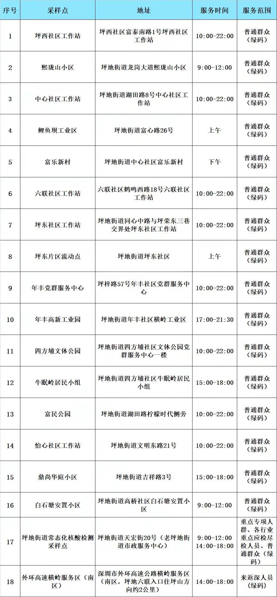 请市民留意各采样点的服务提醒,去前先了解各采样点的服务人群范围,避免跑空跑错。街道社区防疫工作根据现场人流密度,适时调整核酸采样时间,为避免跑空,请大家勿过早或过晚前往,切忌踩点!
