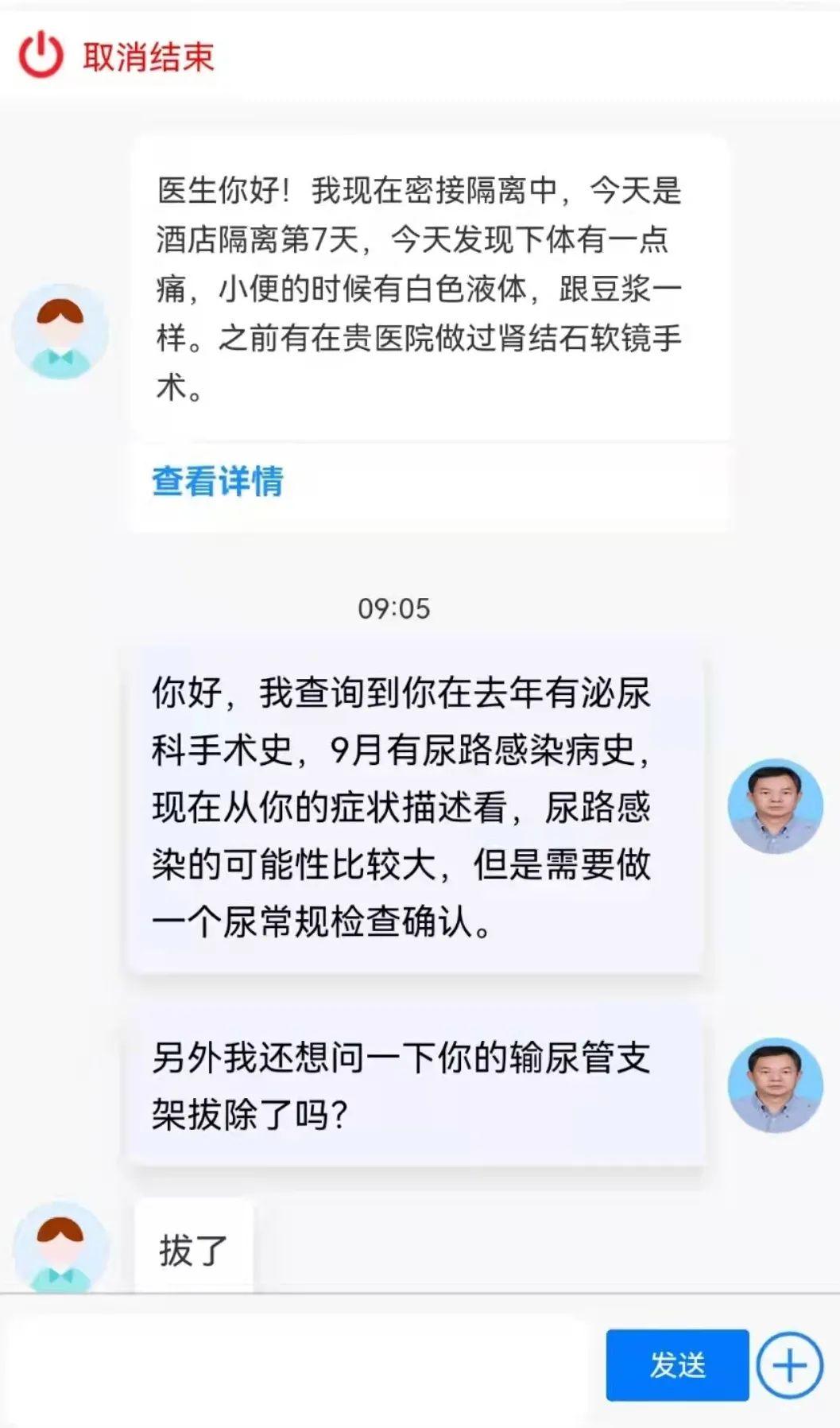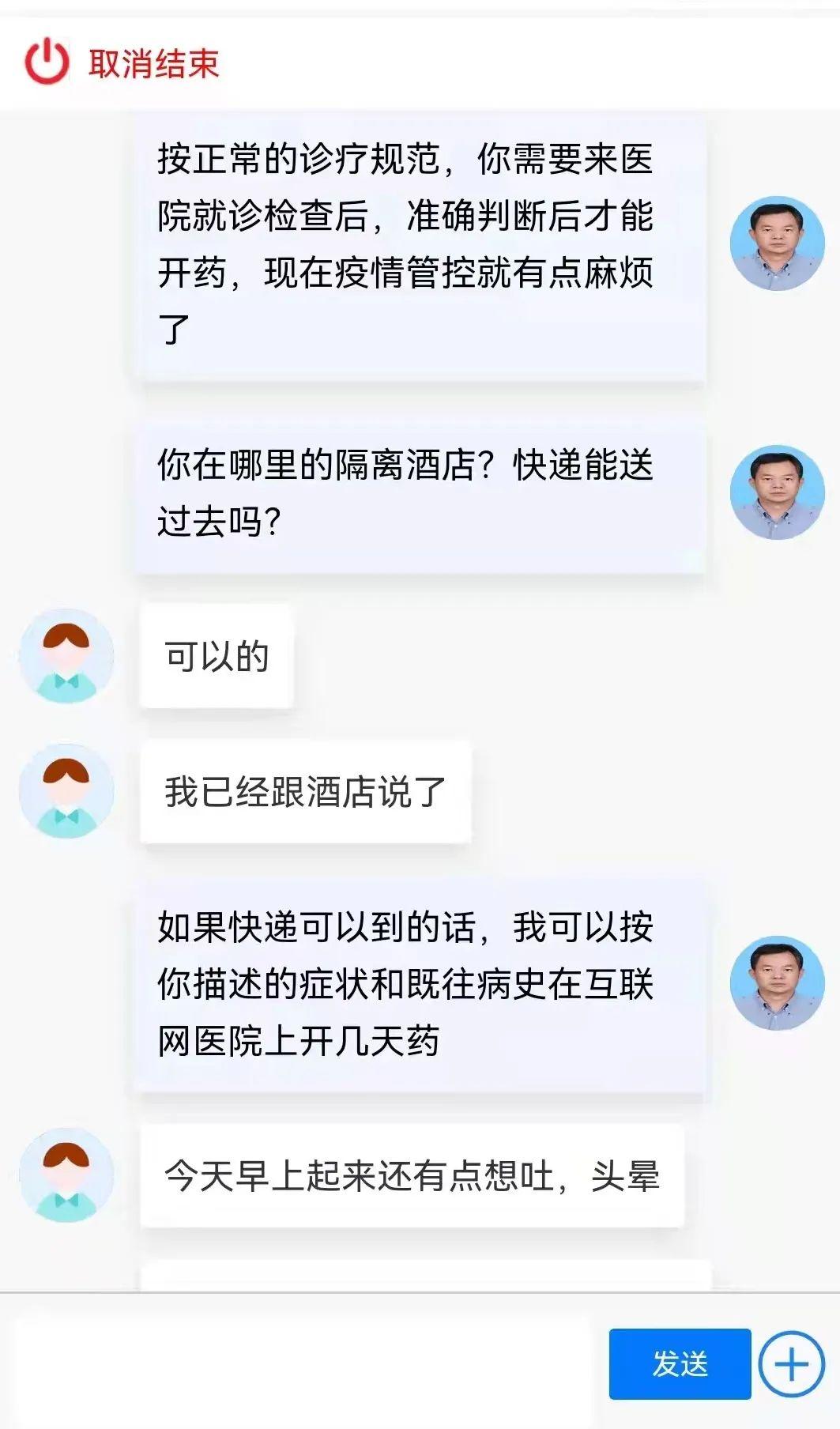 这是一位在隔离酒店进行医学集中观察的患者和医生之间的对话。