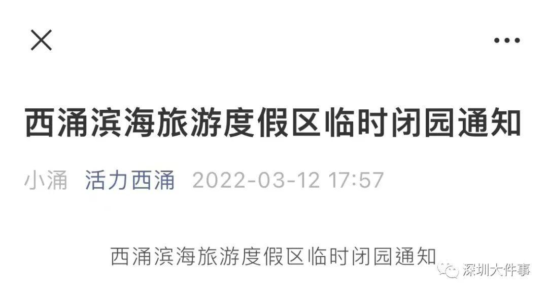 西涌滨海旅游度假区临时闭园通知