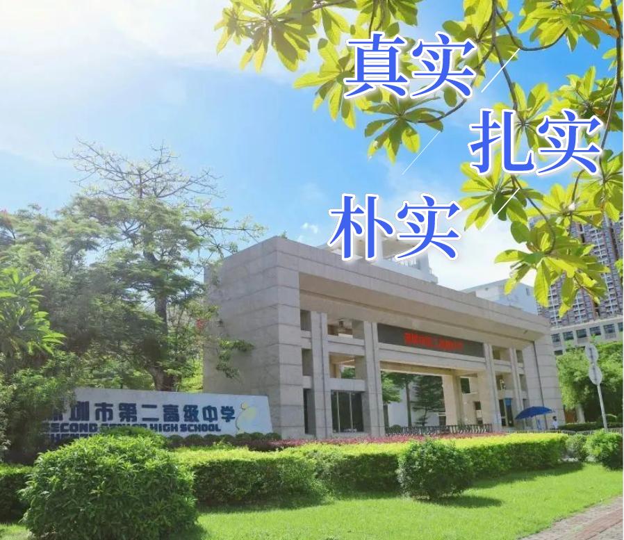 深圳市第二高级中学是深圳市教育局直属的全寄宿制高中,设施设备全国一流。学校高起点办学、跨越式发展,先后获评 “广东省国家级示范性普通高中”“广东省教学水平评估优秀学校”“全国体育示范校”“广东省德育示范学校”“广东省心理健康教育特色学校”“全国青少年校园足球特色学校”“教育部人美美育学堂(广东省唯一)”“深圳市首批生涯规划试点学校”等荣誉称号。