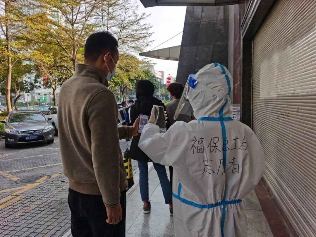 在上户核查宣传工作中,工会战疫组队员们佩戴口罩,穿上防护服,按照疫情防控指挥组“扫楼”专项行动要求,在南方国际广场对入住的近200家企业进行逐家上户登记、扫码入群,随后又转战博伦花园等13个小区近120家三小门店、药店、快递点等进行宣传疫情防控规定、扫码入群,并在入口处粘贴粤康码场所码,对进入商铺人员严格按照要求完成扫码并测温。