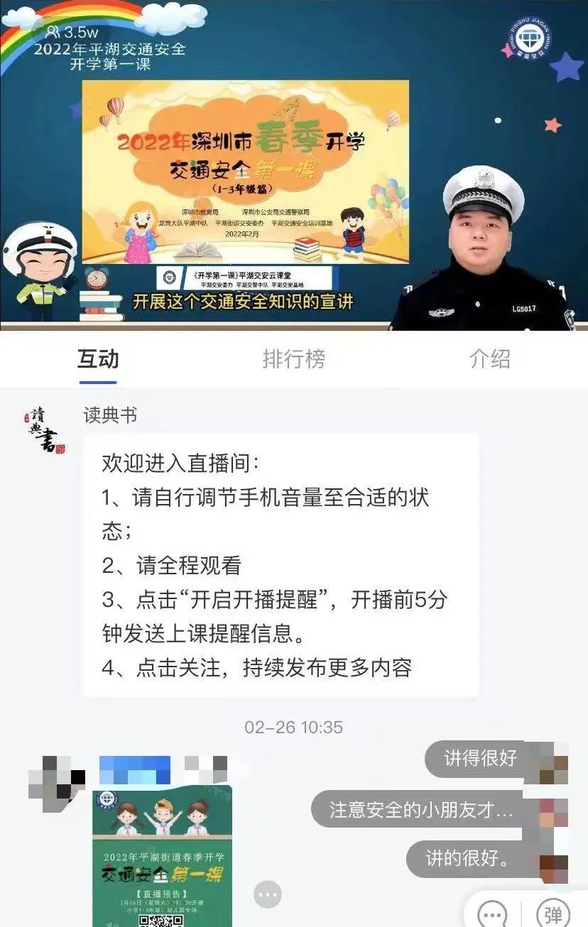 龙岗交警联合相关单位开展“2022年春季开学交通安全第一课”线上直播活动,对“如何安全过马路”“骑行戴头盔”“平衡车不能上马路”“注意大型车辆盲区”等交通安全知识进行宣讲。