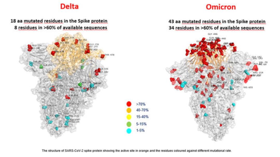与德尔塔相比,奥密克戎毒株拥有更多的刺突蛋白突变这些变异多样化,使其更容易传播