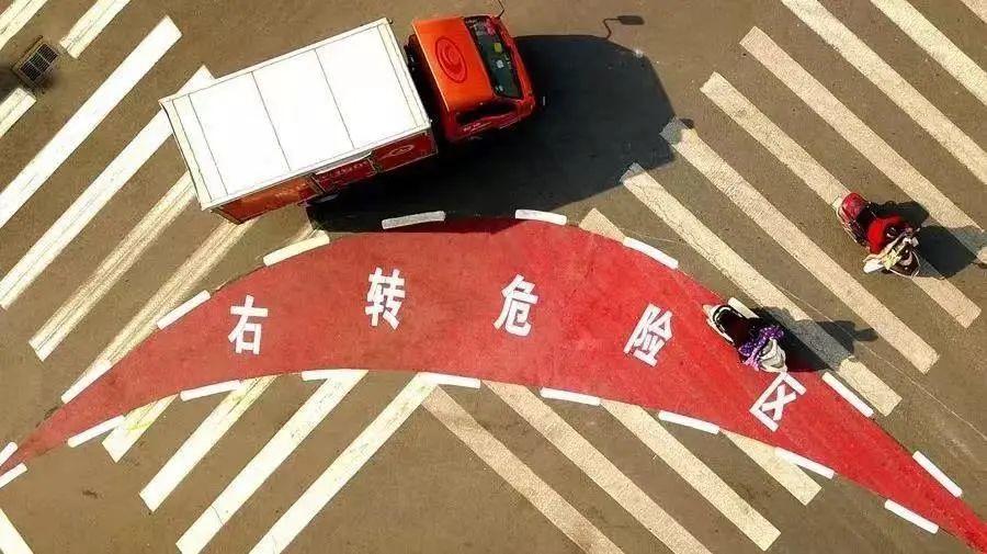 在马路上遇到大型车辆,要尽量远离。在路口的拐弯地带,要注意远离“危险警示区域”。
