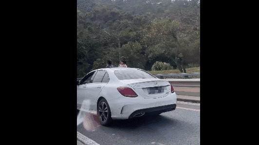 在罗沙路丹平隧道出罗湖方向,家长全程放任小朋友将身体探出天窗外,被网友举报