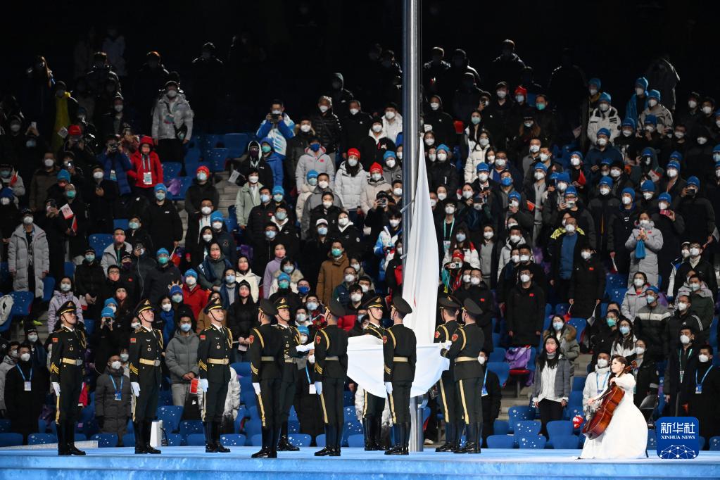 3月13日晚,北京2022年冬残奥会闭幕式在北京国家体育场举行。这是国际残奥委会会旗在闭幕式上降下。新华社记者李尕摄