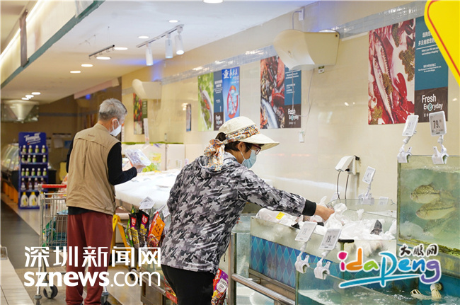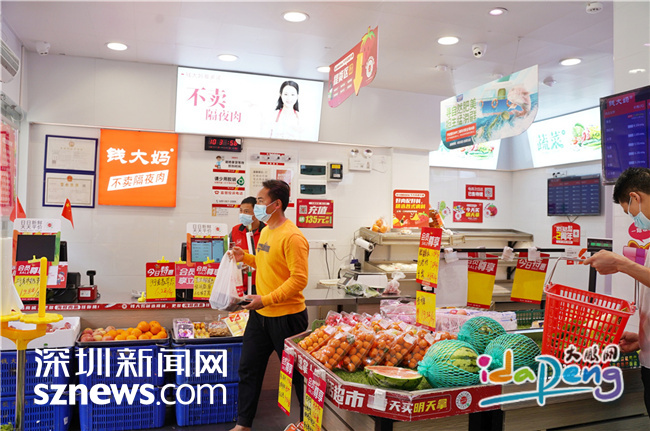 读特客户端·深圳新闻网3月14日讯(记者古亮宇摄影/摄像谢雨婷报道)3月14日,记者大鹏新区农贸市场、超市时看到,市民进入市场和超市都自觉佩戴口罩、测温扫码。市场内秩序井然,米面粮油、蔬菜水果、肉品等种类丰富,数量充足,各类商品价格平稳,能够满足不同消费层次的需求。