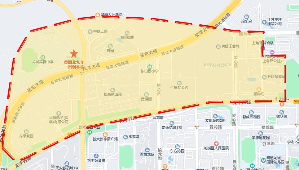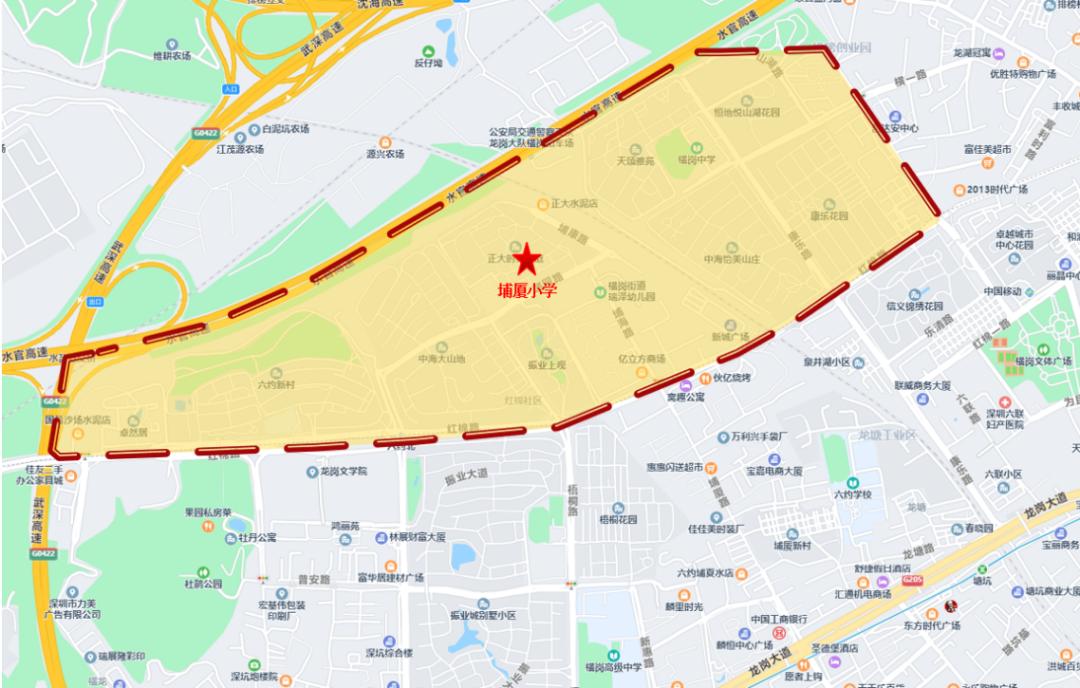 招生范围:恒心路——水官高速——武深高速——红棉路围合区域。该学区为共享学区,片区内适龄儿童仍可继续申请原有学校。
