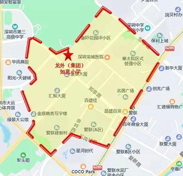 招生范围:南至龙平西路、东至万科翰邻城、西和北至龙城街道行政区域界线,小学、初中保持一致。该学区为共享学区,片区内小学适龄儿童仍可继续申请原有学校,初中与深中龙初共享。