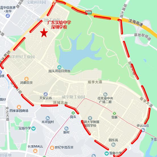 招生范围:五和大道——环城北路——坂澜大道——沈海高速围合区域,小学、初中保持一致。该学区与深大附属坂田学校、宝岗小学共享。