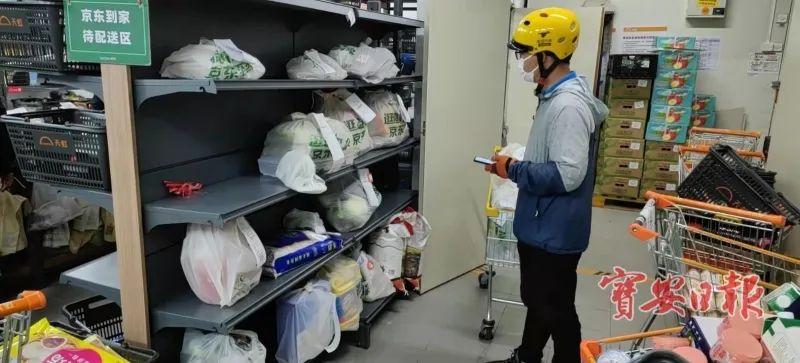 据该商超负责人曾店长介绍:“今早的订单主要以线上订单为主,目前已接到近1500单的线上订单,为平时订单量的6倍以上。”为此,该商超加大了肉菜类食材进货量,确保民生供应,其中蔬菜到店货量是平时周末的5倍,肉蛋到店货量是平时的3倍。此外,米油、调味品、饮用水、消毒物资等民生物资保供应量天数都可以达到30天以上库存。