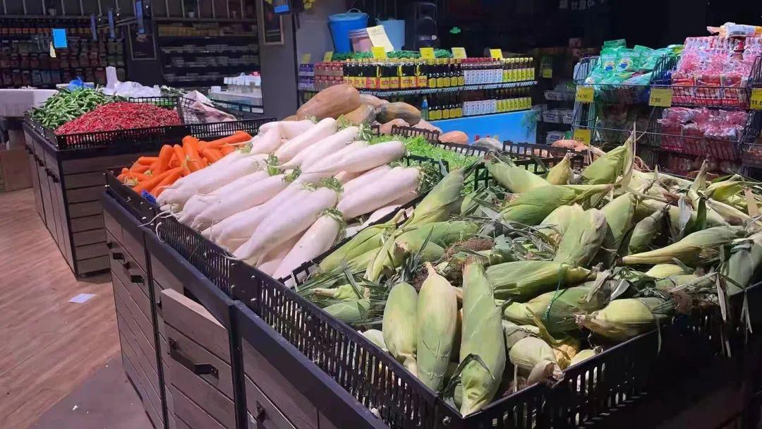 发现生鲜蔬菜、米面粮油等生活物资充足