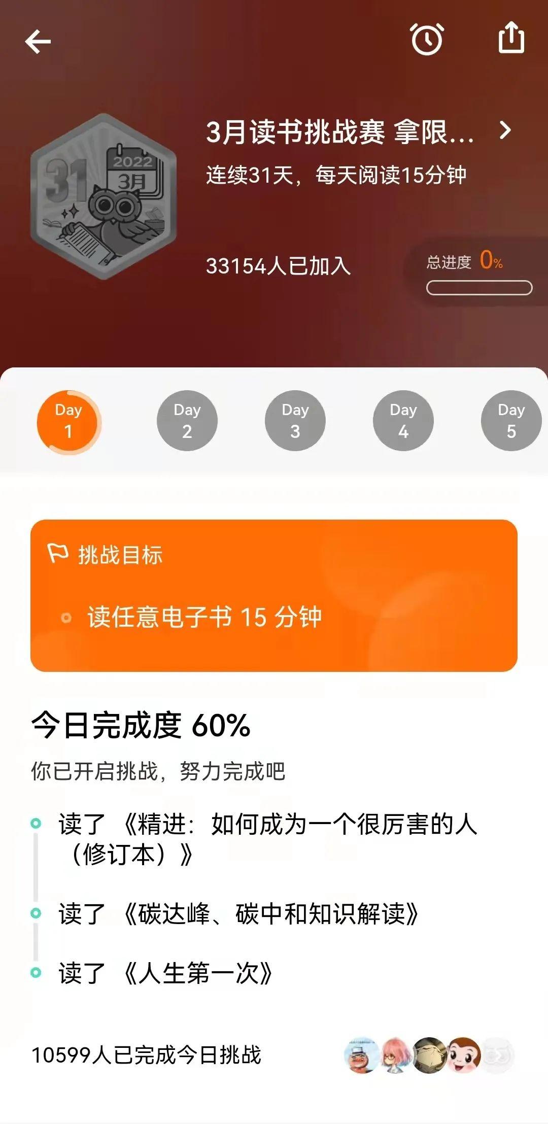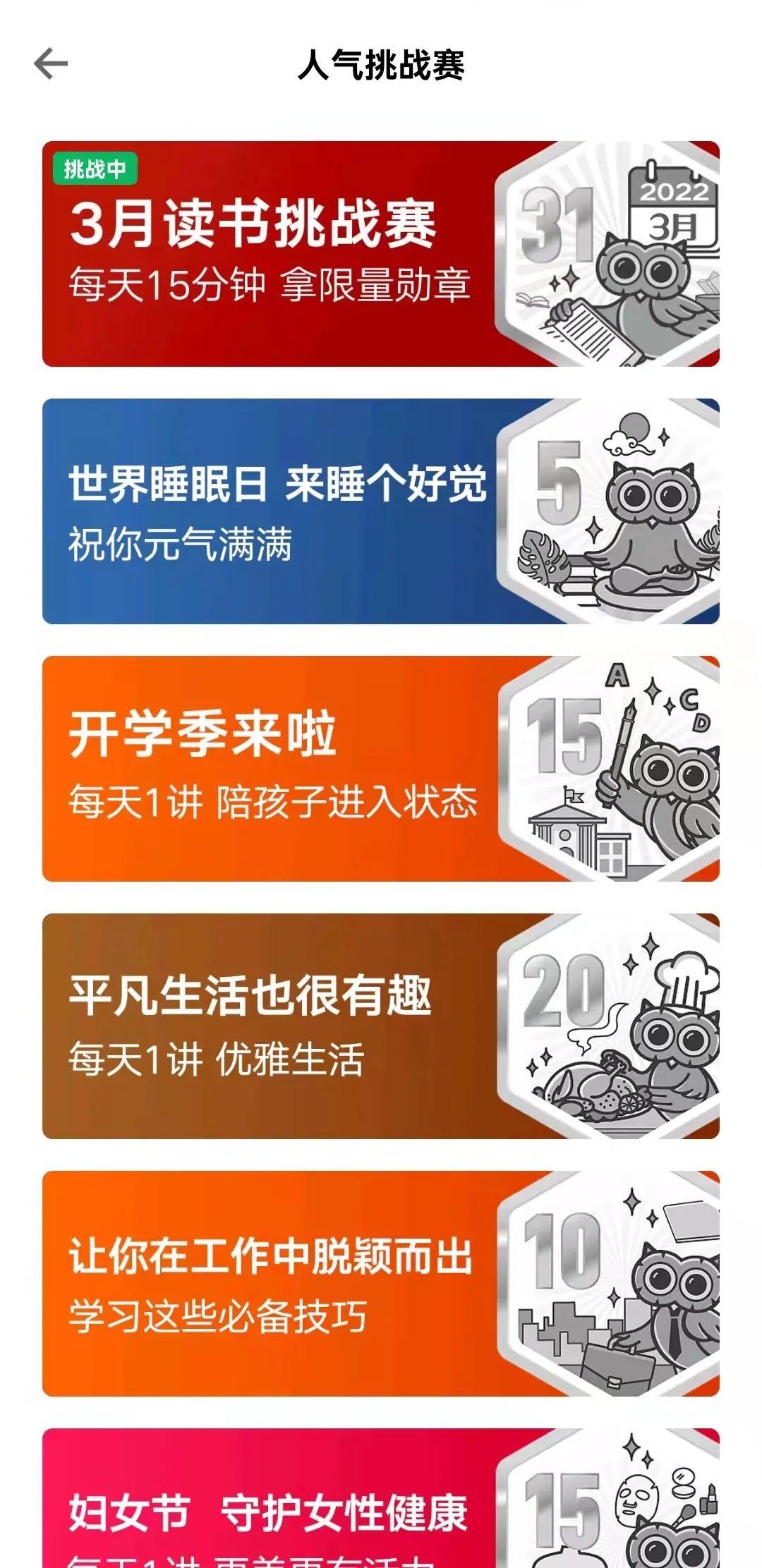 在得到APP“学习计划”→“3月读书挑战赛”中进行阅读打卡。