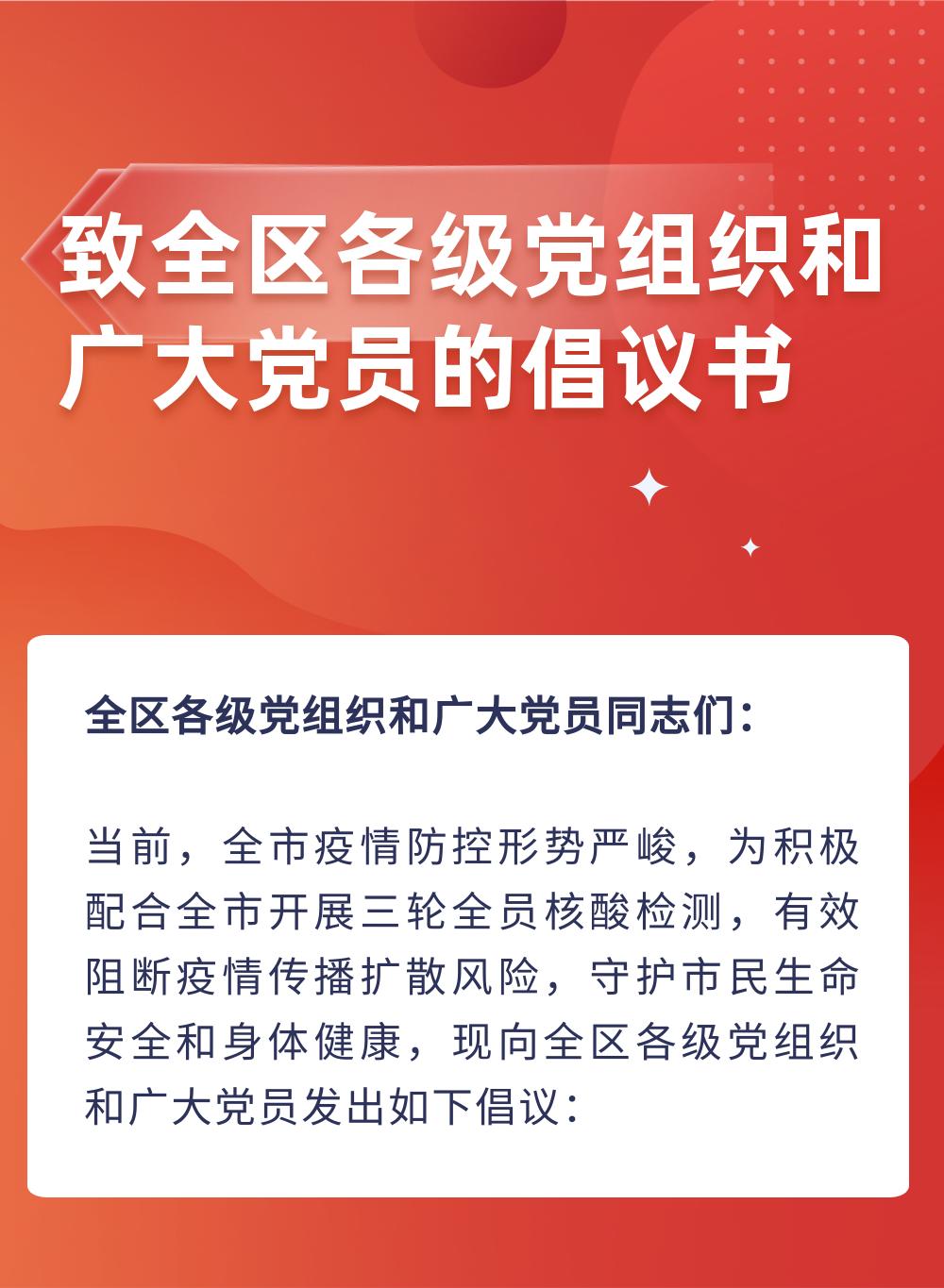 致全区各级党组织和广大党员的倡议书