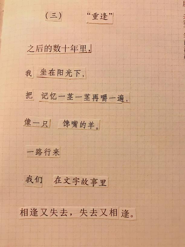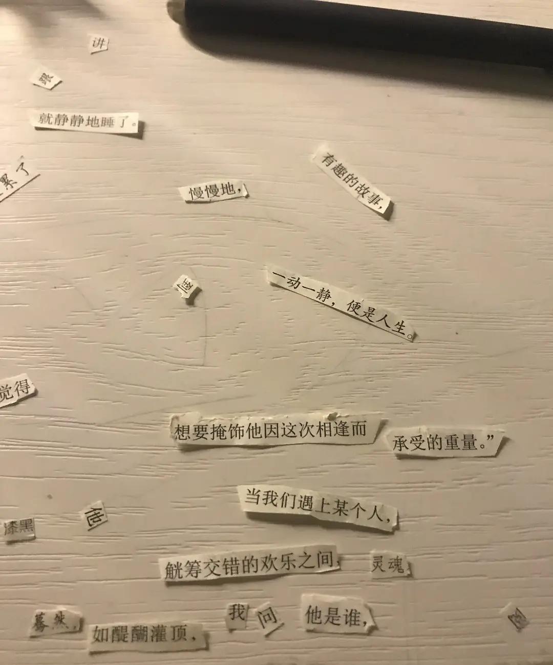 将废弃纸张或者数字载体上的文字,进行裁剪、拼贴、组合、碰撞,形成诗句