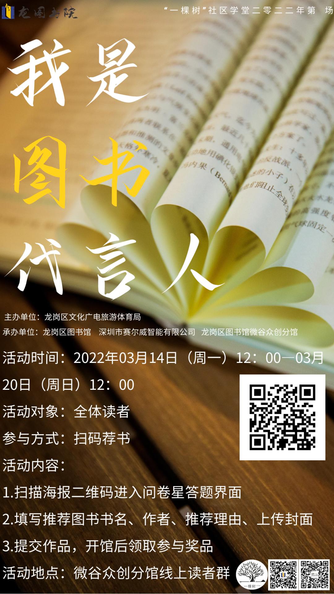 书籍可能是一段生命经历、一种奇妙见闻,也可能是一场奇思妙想。脚步不能丈量的地方,文字可以;眼睛无法看到的地方,文字可以。你是否也有一本曾改变你人生的书,是否也有一本曾照亮你前行的书,是否也有一本希望他人阅读的书。如果让你来当一次图书代言人,你会选择代言哪本书呢?为什么是它?