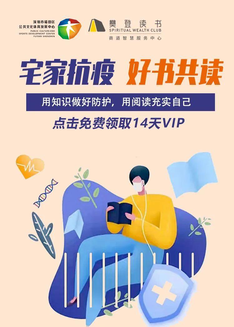 为了帮助市民朋友丰富居家生活,弥补线下文化活动和服务的缺失,福田区公共文体中心联合樊登读书(深圳樊登书店),向全市居民推出8万张福田文体中心与樊登读书联名书卡,陪伴大家度过7天难忘的居家之旅。