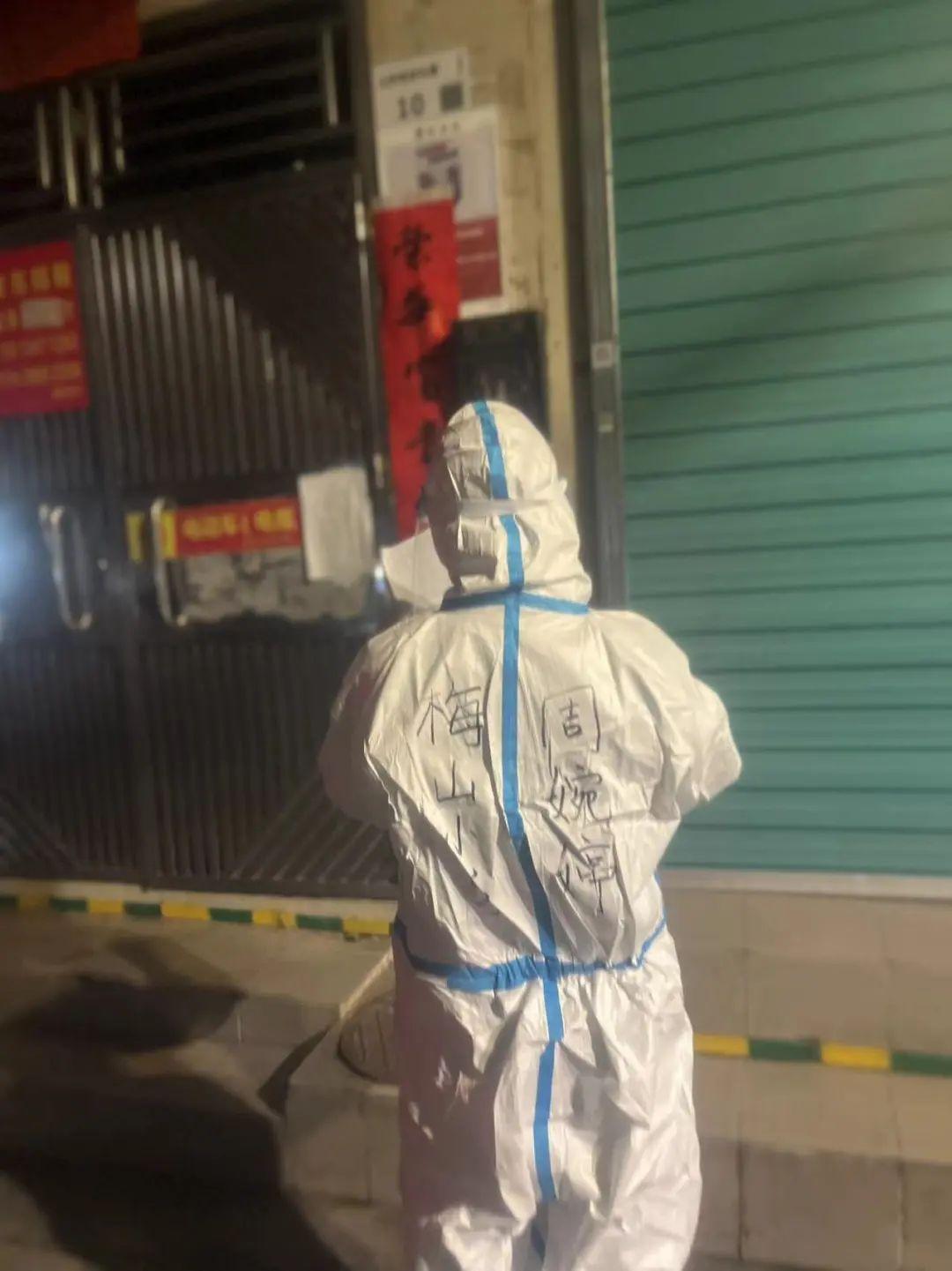 在简单收拾完行李后,老师们便立马身穿防护服,变身“大白”前往疫情最严重的上沙东村。在这里,每位老师都需要负责一整栋住宅楼,劝导居民、传递物资、清理生活垃圾。一层一层,一户一户。