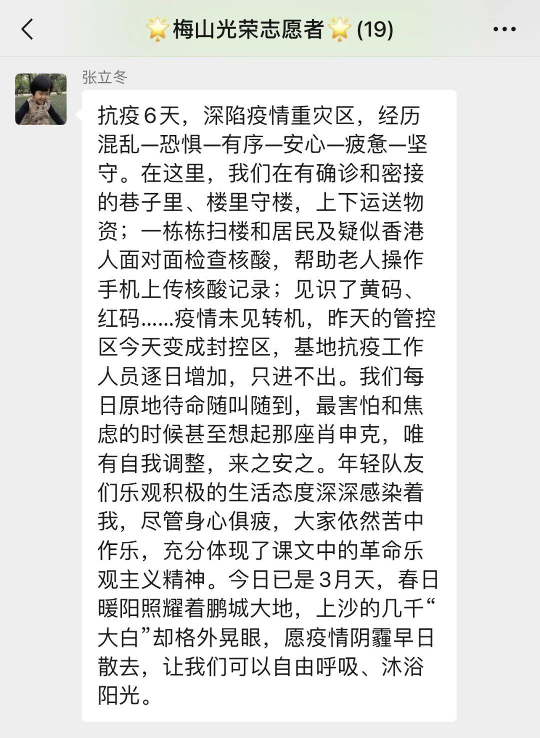 夜与日的坚守,勇敢与害怕的徘徊,汗水与泪水的交织,梅山“大白”以爱为名,吾冠之心,以铿锵的行动深深爱着这座城市。所有人都相信,疫情散去也一定会是深圳速度!三月,定会春暖花开,疫情散去,国泰民安!