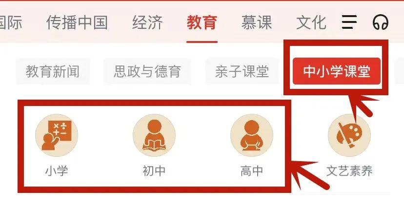 打开“学习强国”APP,找到“教育”频道,进入“中小学课堂”栏目。