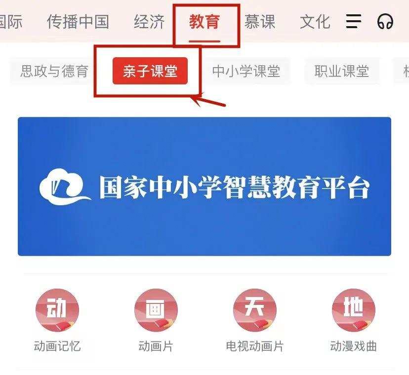 打开“学习强国”APP,找到“教育”频道,进入“亲子课堂”栏目。