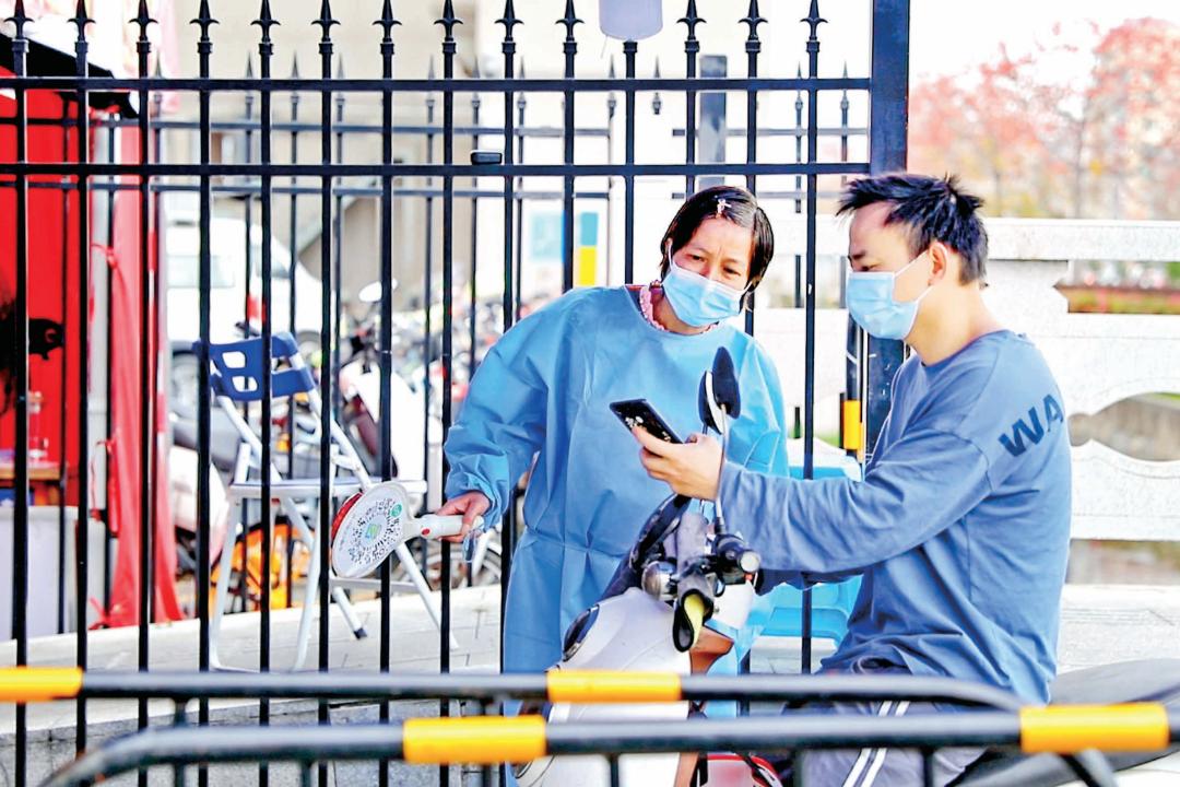 3月14日一早,居民自发到社区报到领“活”,戴上红袖章、手持大喇叭,化身“宣传员”,沿街“播报”最新疫情防控政策,告诫居民尽量不外出、不堂食,按要求做好核酸检测,积极配合社区做好各项防疫工作。