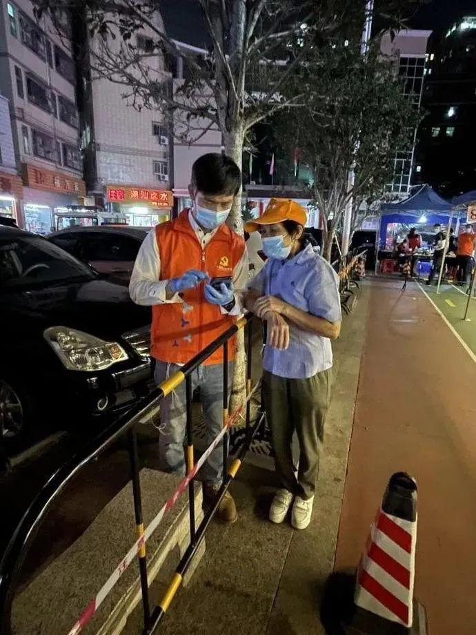 石凹篮球场核酸检测点地理位置不佳,经常出现人手紧张的情况。每当遇到问题时,肖天宝都第一时间帮忙解决,大伙都亲切地喊他 " 阿宝 "。今年1月26日,在大家都在为过年做准备时,肖天宝默默放下了与家人视频通话的手机。父母亲说,家里的新房子盖好了,等着他回去看一眼。因担心疫情反复,身为社区工联会副主席的他还是决定春节留深," 在基层工会工作,大家一年到头都很辛苦,有假期都轮流来休。总要留人值班的,还是我来吧。" 就这样,春节期间,他成了办公室的 " 留守人员 "。