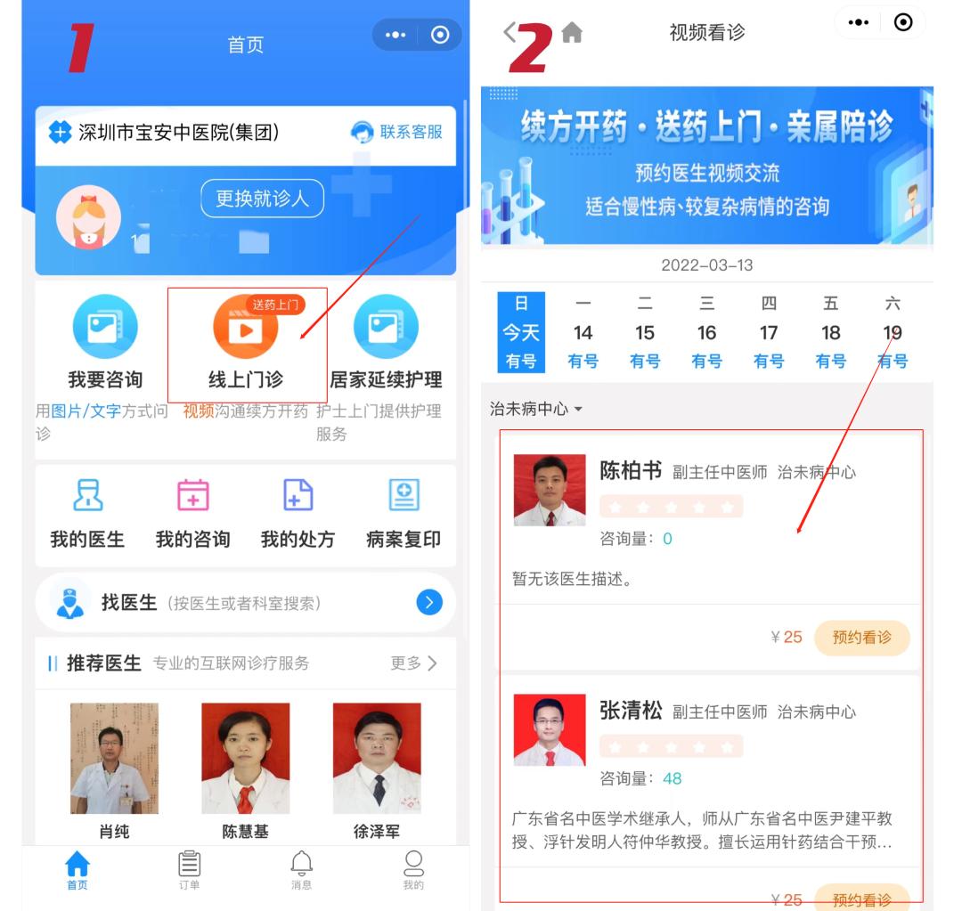 宝安中医院(集团)网上医院进行在线就诊、开药
