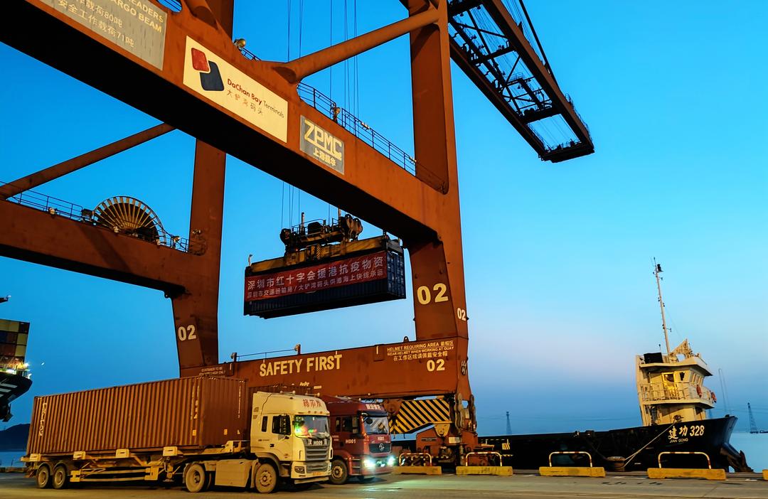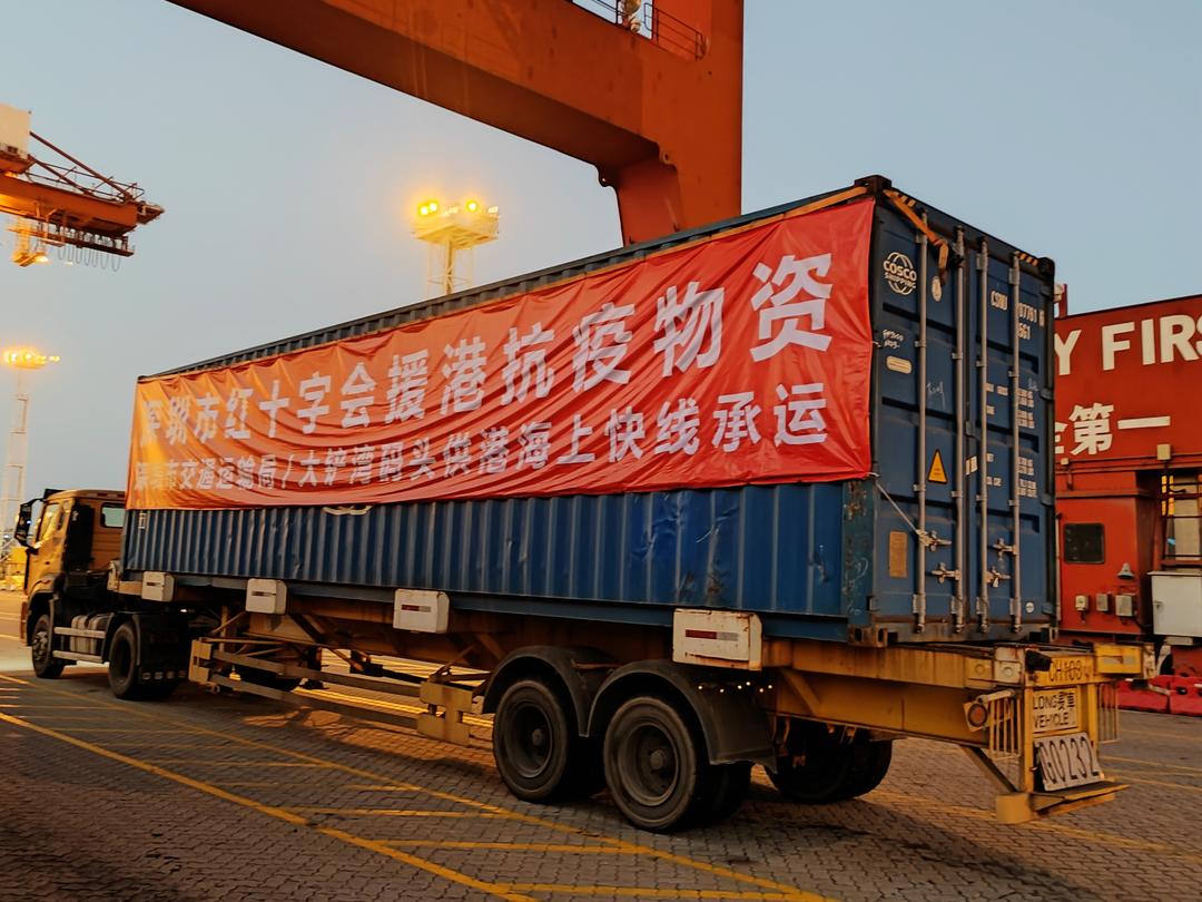3月14日,在市交通运输局的统筹下,大铲湾码头联合华南集运、五洲航运、深圳船务等企业,义务帮助深圳市红十字会运送援港抗疫捐赠物资。