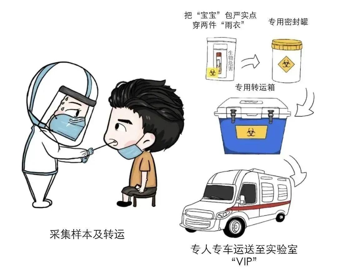 一根根拭子样本舒适地呆在保存液里,外边还“穿”着密封保存袋、转运箱等层层保护,坐上专车,开启了“使命”之旅。