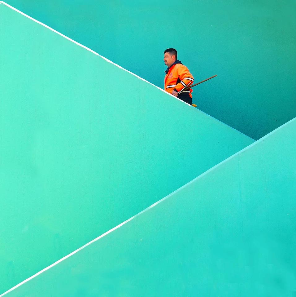 他改造了城市景观,将建筑重新定义为几何抽象,