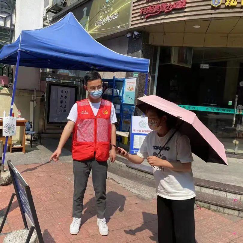 第二组教师在连续工作三小时后,第三组教师志愿者又全身心投入了工作中。“请大家提前准备好健康码”“请到后面有序排队”……大家就这样一遍遍耐心地重复着这些话。