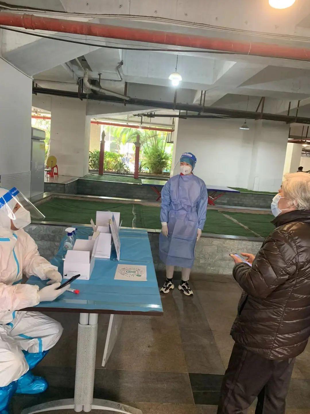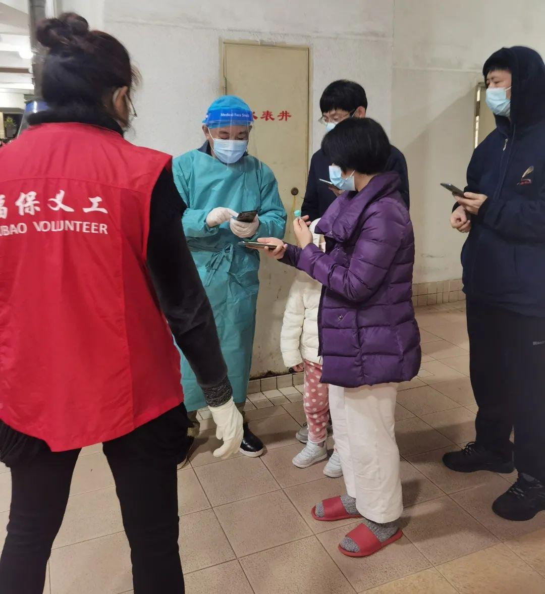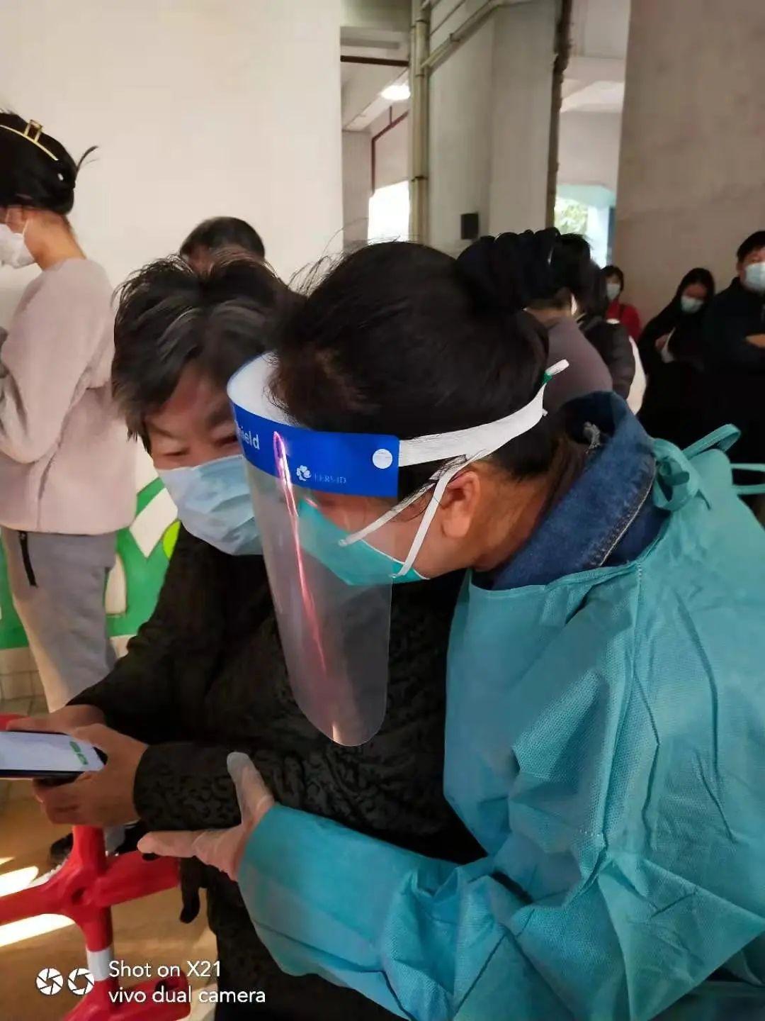检测前,大家有序分工。检测开始,测量体温、做登记、维持现场秩序……为避免居民等待时间过长,排队受冻,她们一遍遍讲解检测重点注意事项、实时通报检测进程。她们和待检人员最近距离接触毫不畏惧,奋斗在自己的战斗岗位。