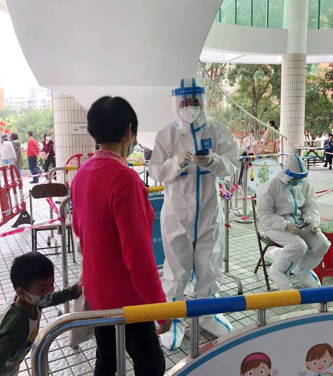 曾力和卓容梅下沉到社区,疏导群众、扫码验码、秩序维护,协助完成核酸检测采样等等。他们认真细致、热情周到的“守护”,为福田抗疫增添了坚实力量。“疫”不容辞,为防控疫情尽着自己最大的努力!他们的坚守与奉献,为福田的“抗疫组曲”又增添了一曲动人的乐章。