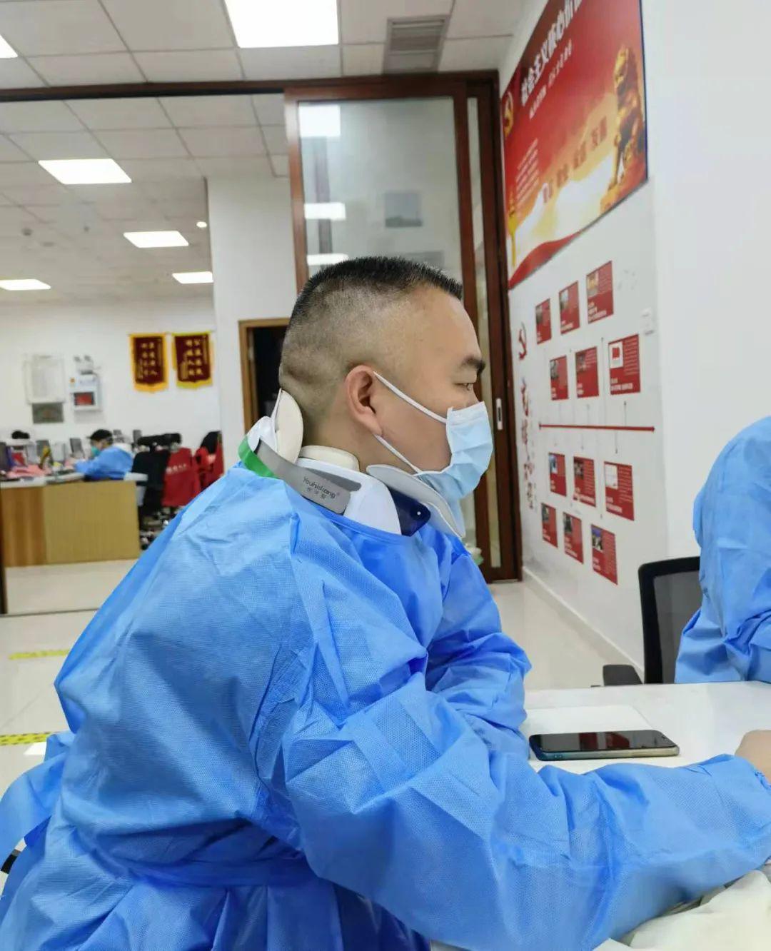在年前,陈少锋在颈椎处做了两次手术,到现在仍然还在恢复疗养中,脖子上还戴着一个护颈套,但是从一开始征召志愿者,陈少锋第一个报名,当得知自己是被安排到社区,急忙向校长打电话要求到管控区,“我跟江伟波是战友又是党员,所以怎么说我们两个去一线是最合理的”。