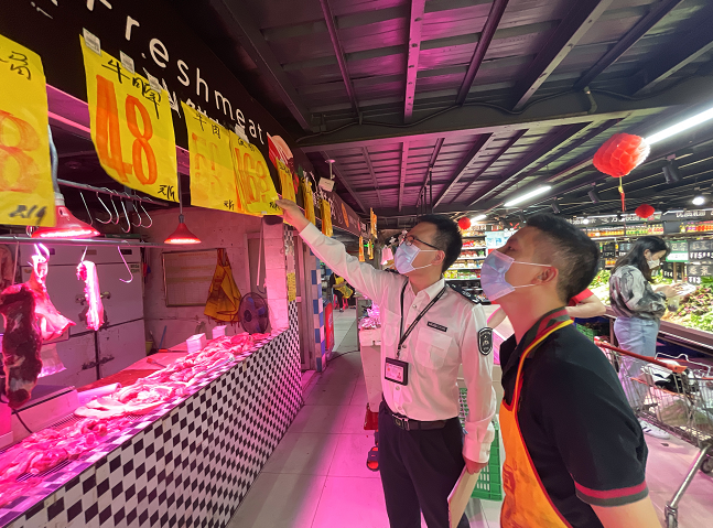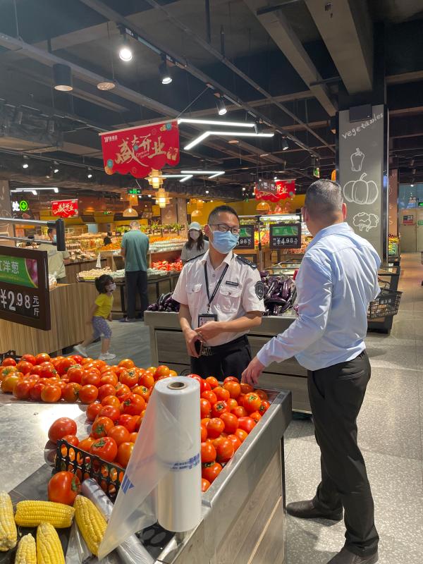 对重点领域重点场所加大价格巡查力度,共出动执法人员100人次,对全区所有农贸市场、55家次商超摊档开展检查。检查了从业人员管控措施,查看从业人员口罩佩戴、核酸检测、疫苗接种等疫情防控措施是否落实到位,叮嘱商家要做好疫情防控相关工作,告诫其严格遵守价格法律、法规,落实告诫书相关要求,配合政府部门做好市场保供稳价工作,自觉维护良好的市场价格秩序,严禁哄抬物价、囤货居奇的行为发生。