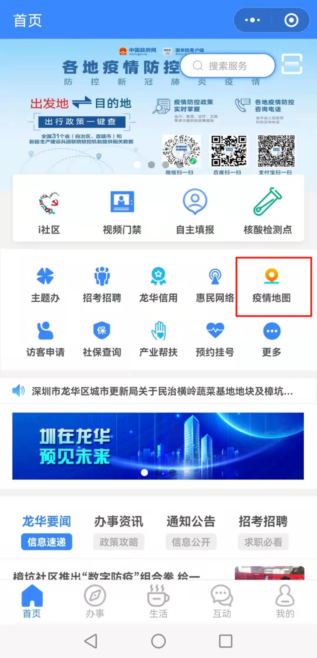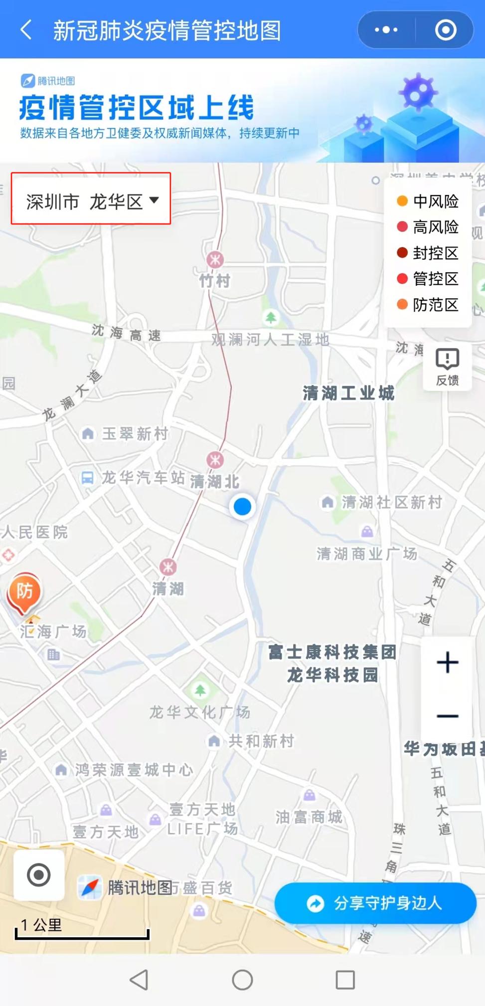 扫描下方二维码关注“i龙华”微信公众号,点击菜单栏目“公开速递”➩“i龙华”➩进入小程序➩“疫情地图”即可查看;