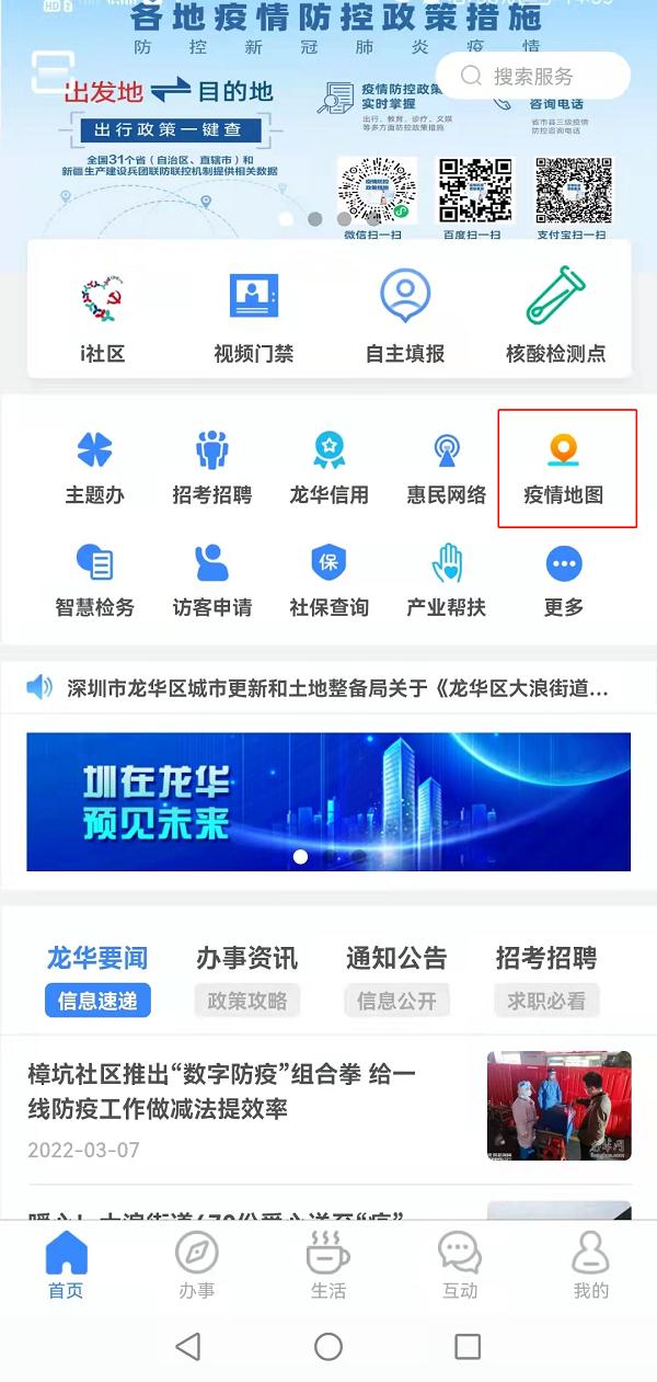 微信扫描下方“i龙华”小程序二维码或下载“i龙华”APP,在首页点击“疫情地图”即可查看。