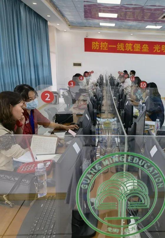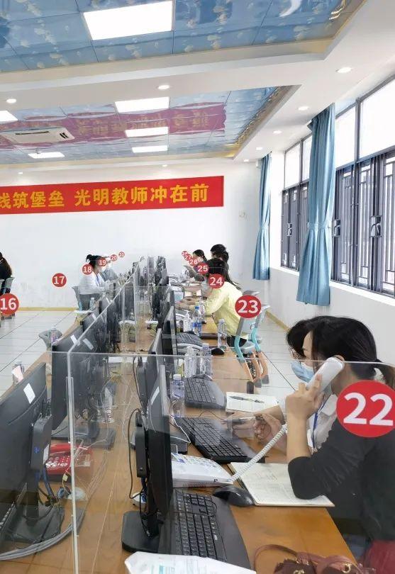 光明区教育系统在接到支援一线的通知后,第一时间积极响应号召,先期召集1500名教师组成教育系统流调外呼队伍,在六个街道的六所学校快速布置工作点,积极跟岗锻炼学习先后三次开展模拟演练,在3月13日下午接到流调外呼任务后,马田街道组在一个小时内完成集中办公点集合,并迅速投入电话核查工作,较好地完成任务。