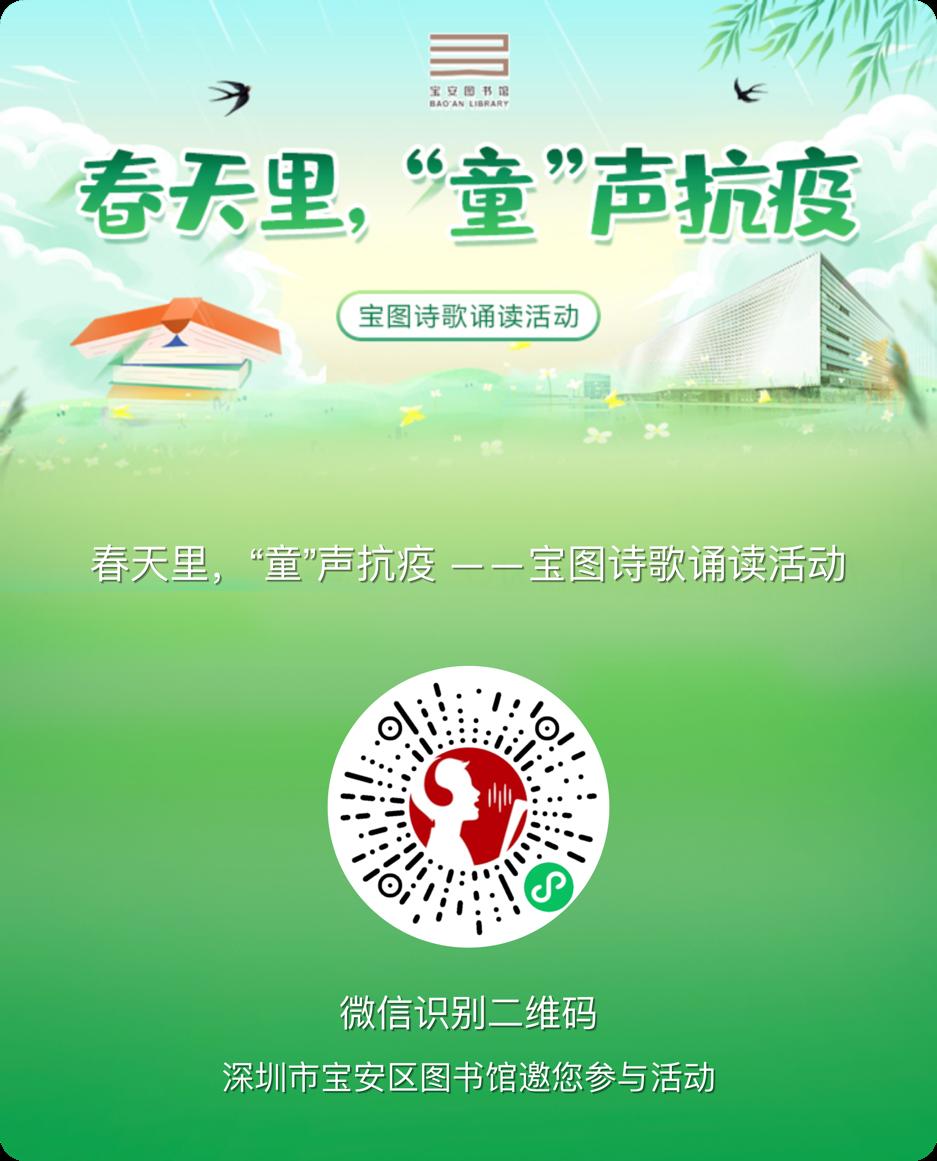 在疫情防控持久而艰难的决战阶段,感恩为疫情防控付出辛劳的一直努力坚守的所有战士,宝图现组织一场线上诗歌诵读活动,专门面向3-18岁的青少年及儿童读者征集音视频。