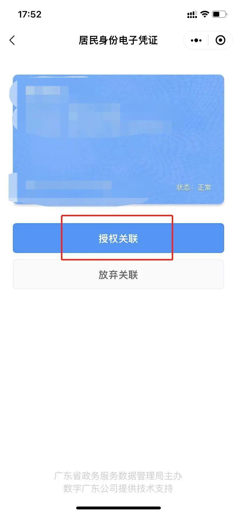 3.看到自己的身份信息卡后,点击“授权关联”;