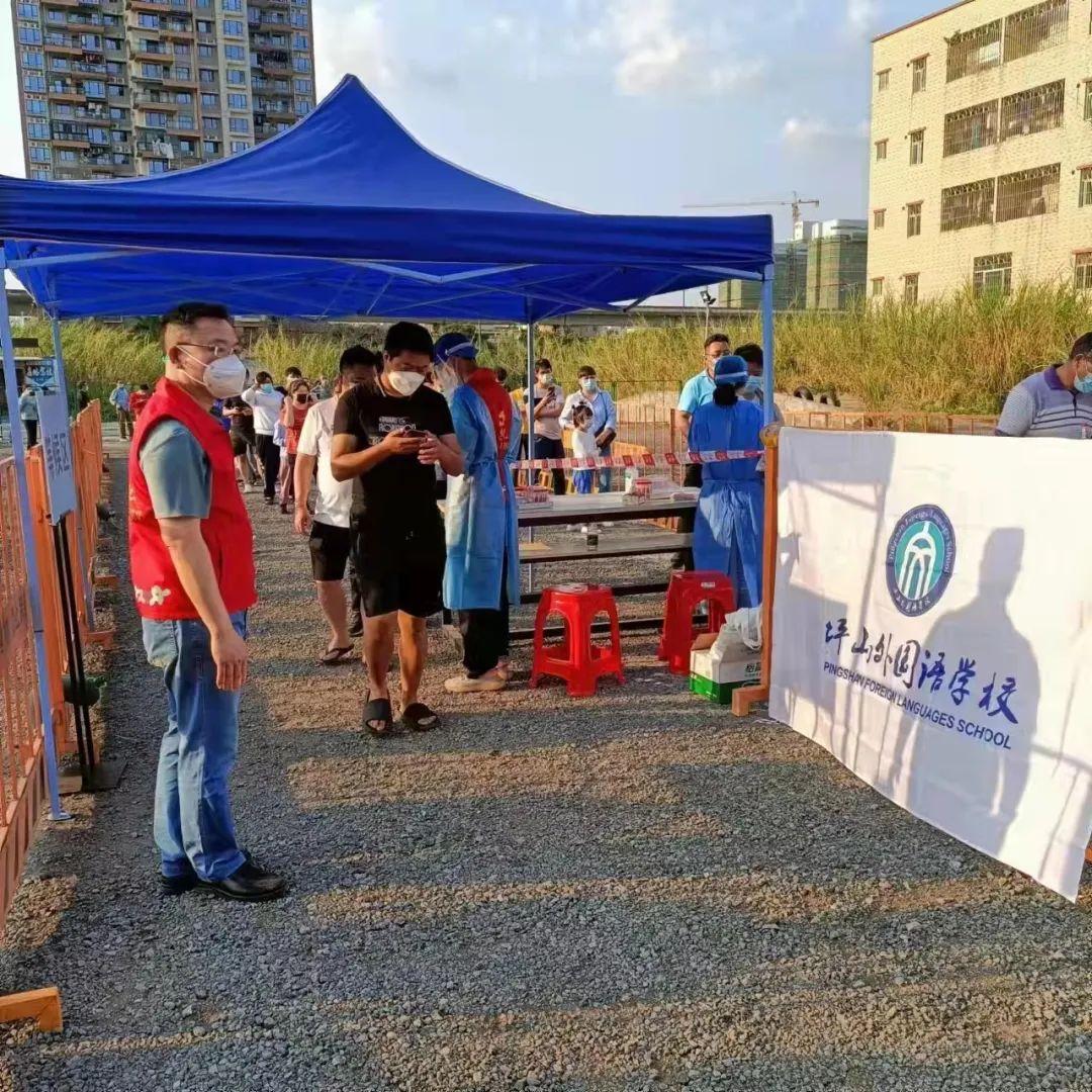“我昨天下午就准备约车回坪山的,但是一直没约上,我不能保证我明早就能到岗,但是如果今天去不了,明天我也会继续约车的!”这位焦急地要约车回坪山的,是坪山外国语学校的杨老师,她于3月12日主动请战了学校党支部组织的志愿者活动。当时深圳11个区相继发布“停止堂食”的通告,学校党支部意识到可能马上要开展全市大规模核酸检测,于是迅速组织了第一批志愿者,以便随时支援社区。这次坪山外国语学校志愿者活动的总负责人张老师表示,他们这批教师志愿者共27人,很多老师都不是第一次参加志愿者活动了。“用我们校长的话说:身为社区的一份子,理应服务社区回馈社区。”