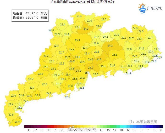 3月16日,粤西的北部、粤北、珠江三角洲北部市县多云转阵雨,其余市县多云。大部分市县早晚有轻雾,西部部分市县和琼州海峡部分时段有雾。最低气温:珠江三角洲和粤西市县19℃~21℃,其余市县16℃~19℃。