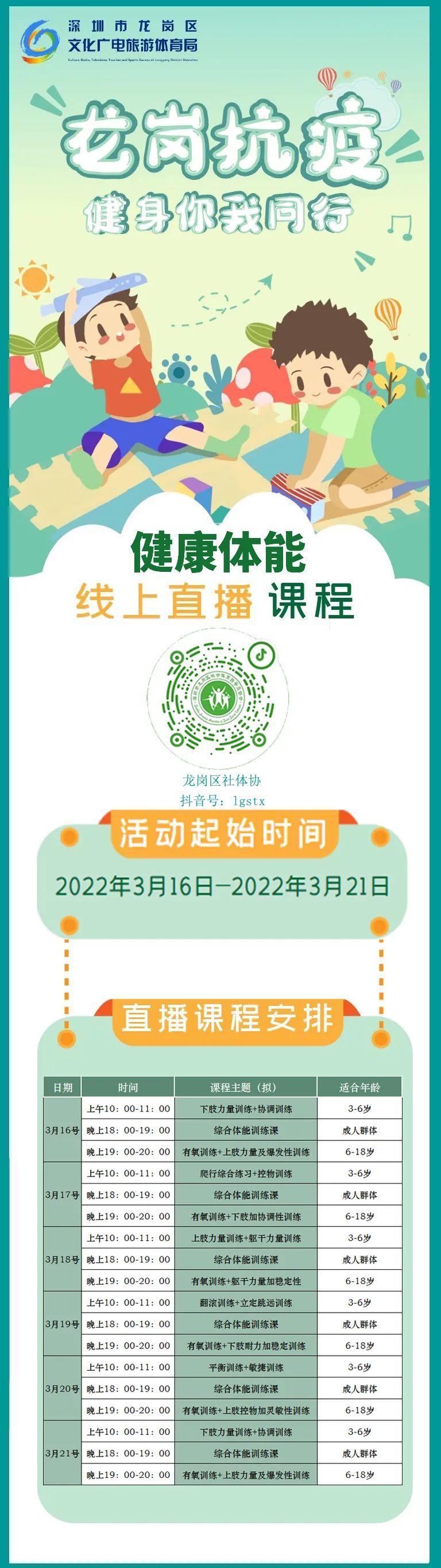 课程每天分时段开播,适合老中青三代人居家健康体能练习,帮助家长及孩子缓解居家焦虑,通过科学有效的运动,保持一颗运动的心和强健的体魄,一起“稳居家,云抗疫”!