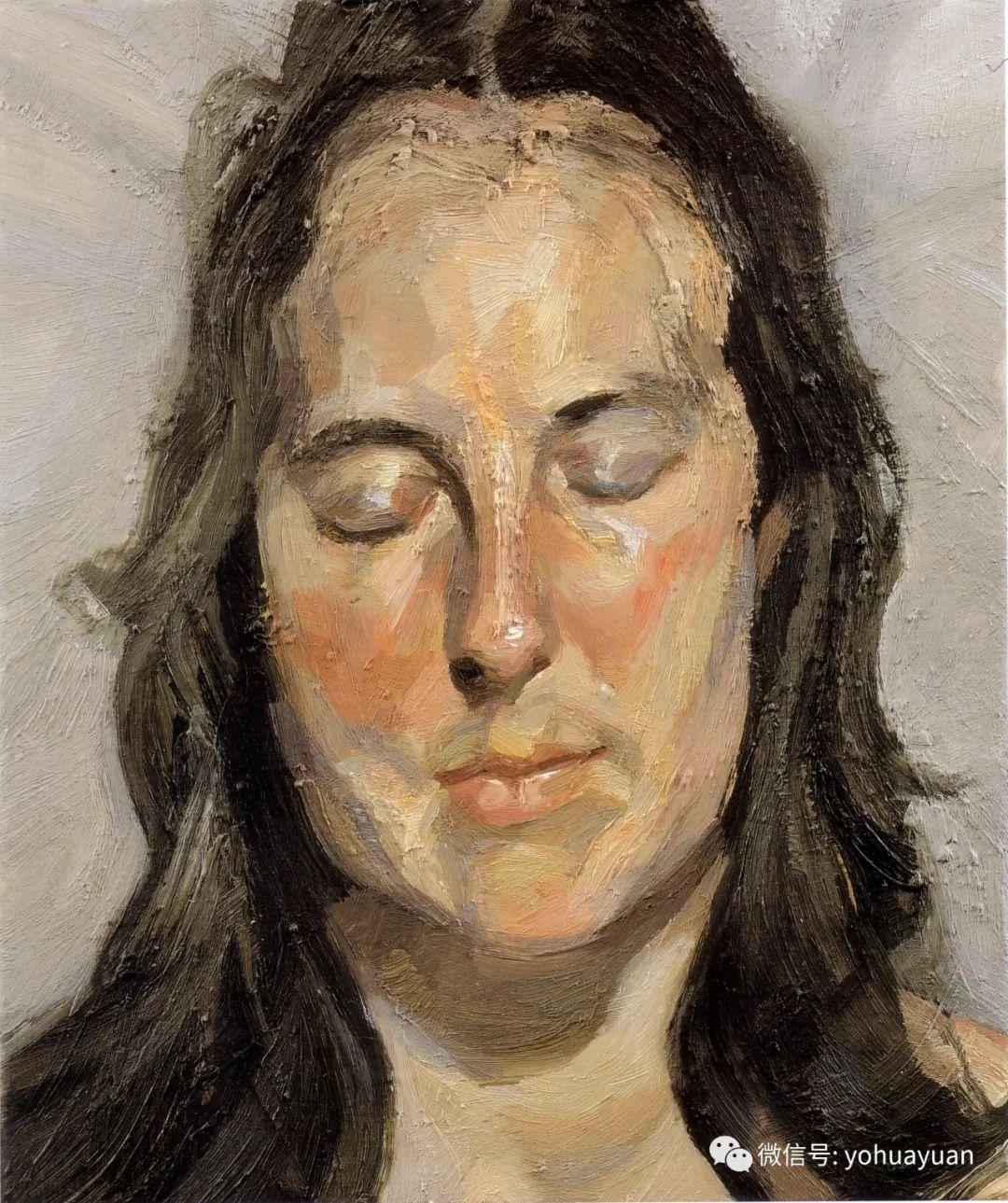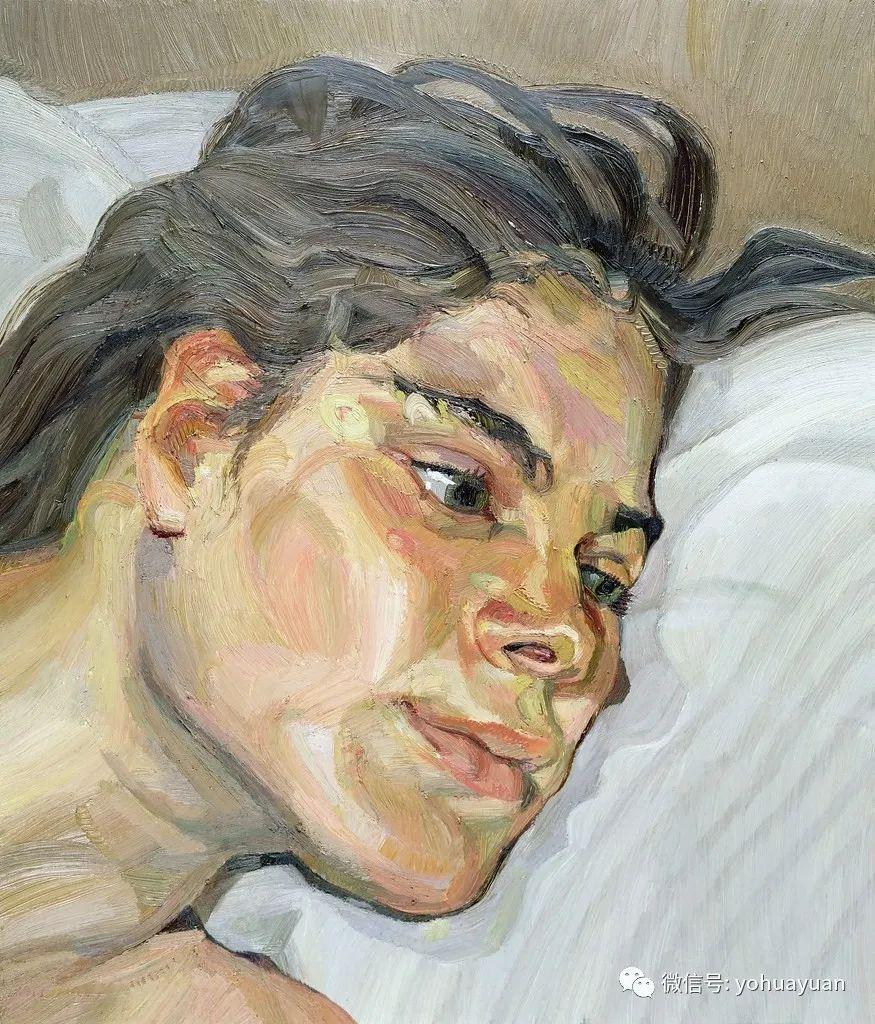 2、弗洛伊德亮部和暗部形成厚度上的对比,运用相对的薄画法,通过色层的不同形成层次感。