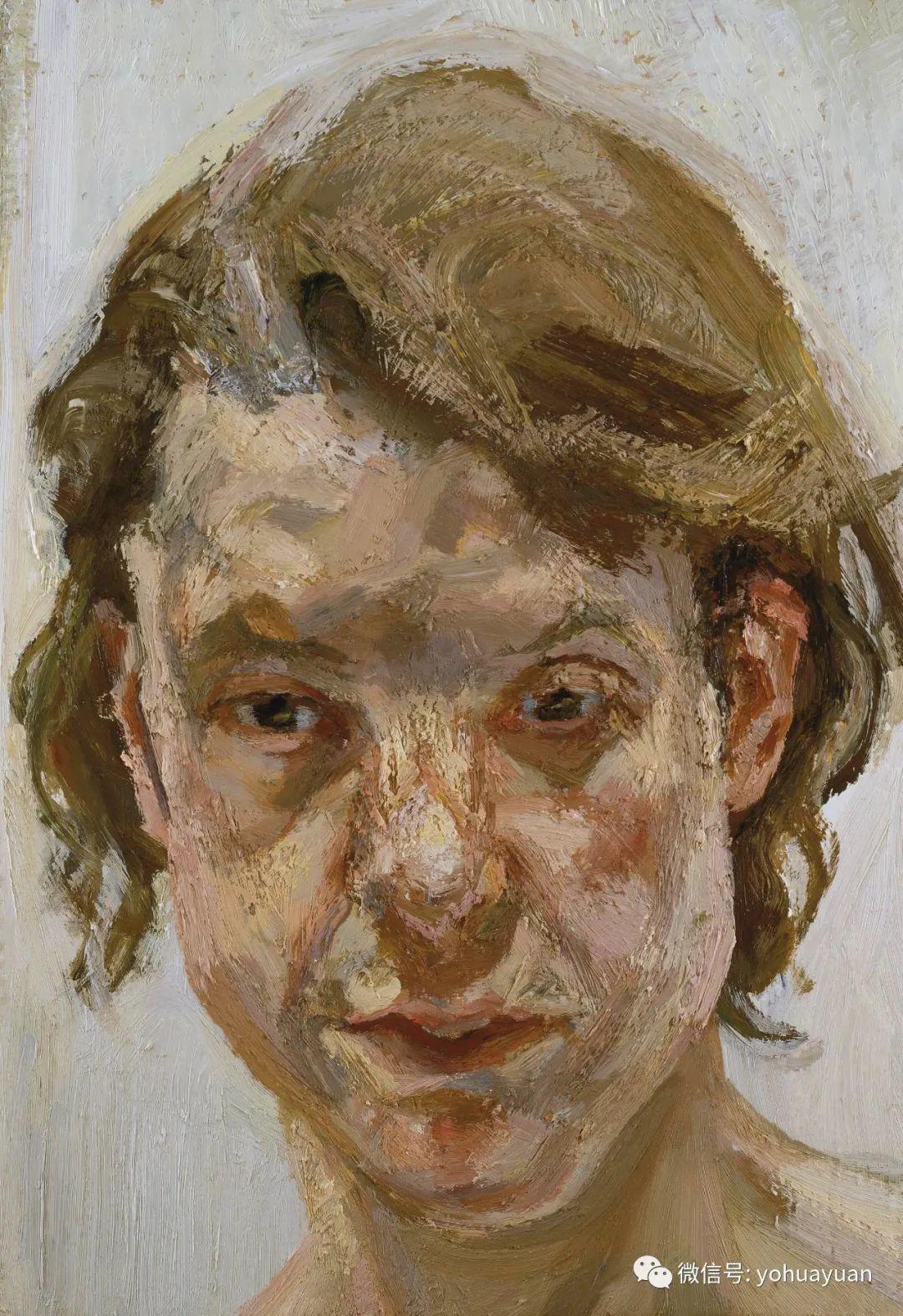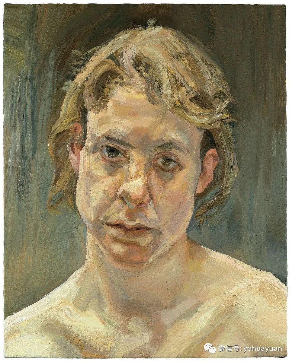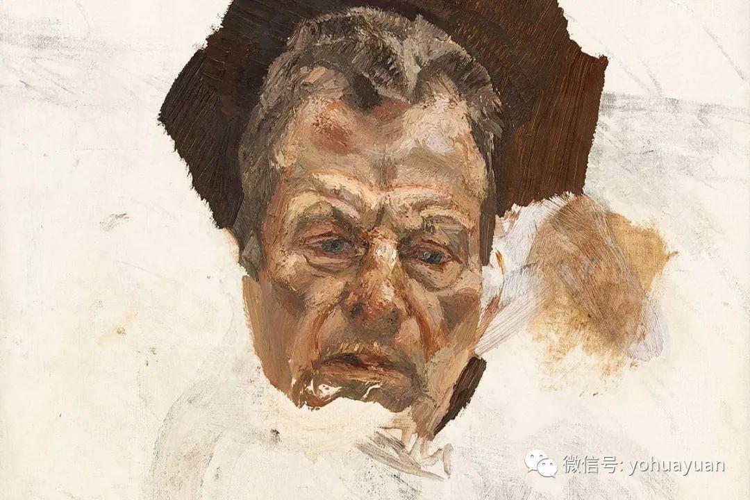 1、弗洛伊德的暗部以厚画法,画出依附在形体结构上的笔触线条,通过颜料的厚度和笔触的叠压,形成一条结实、色彩丰富的外轮廓线。