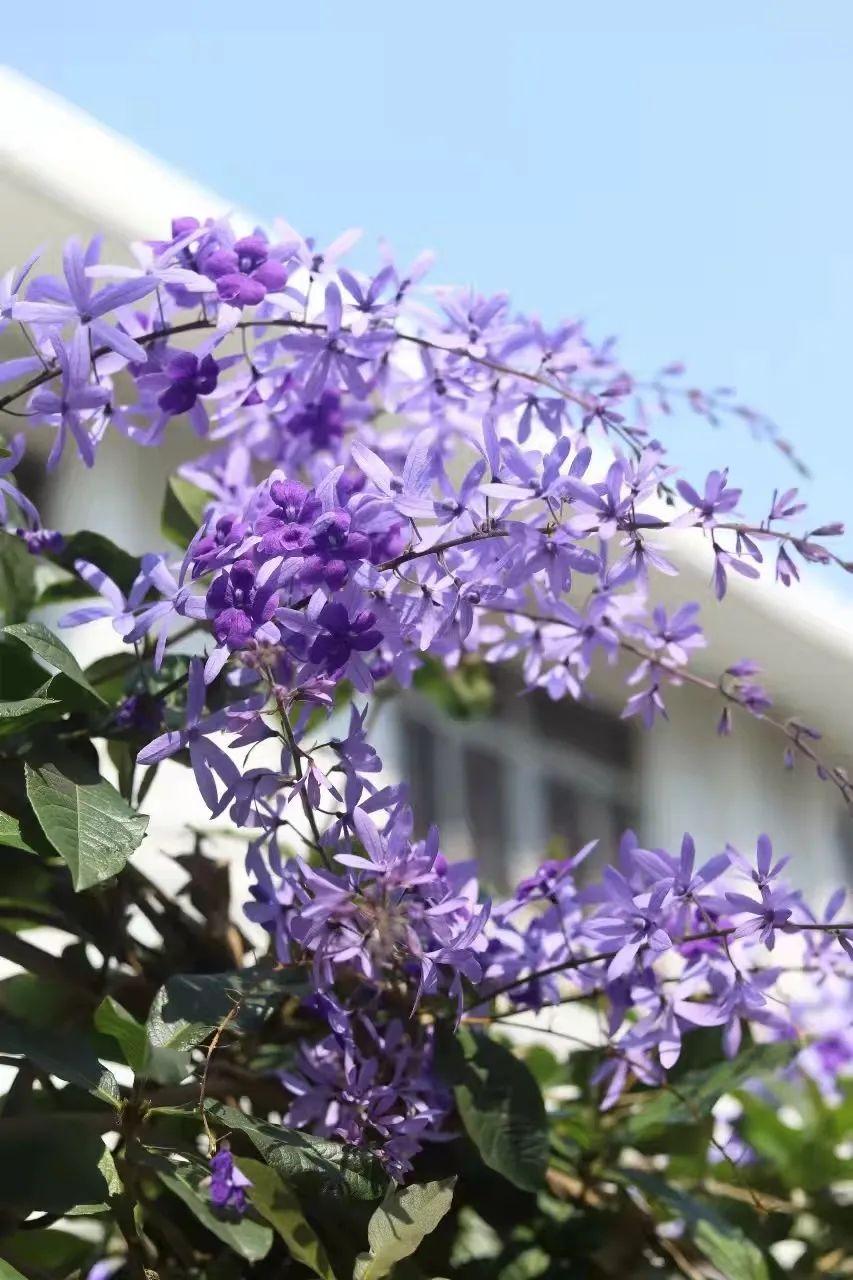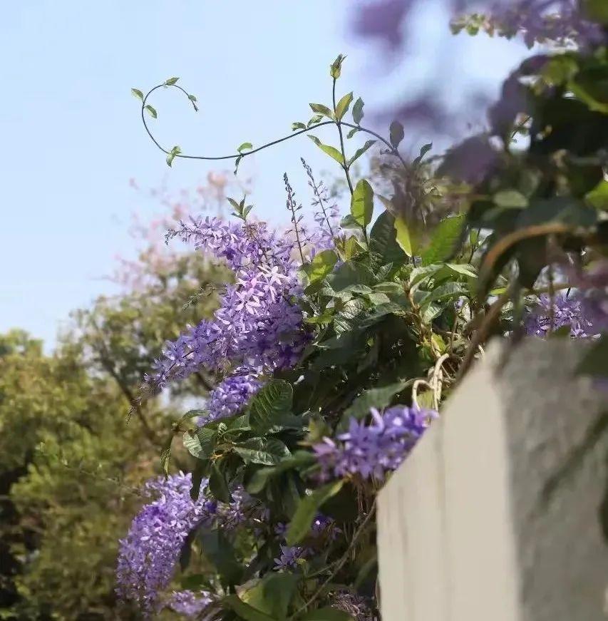 蓝花藤迎风绽放。