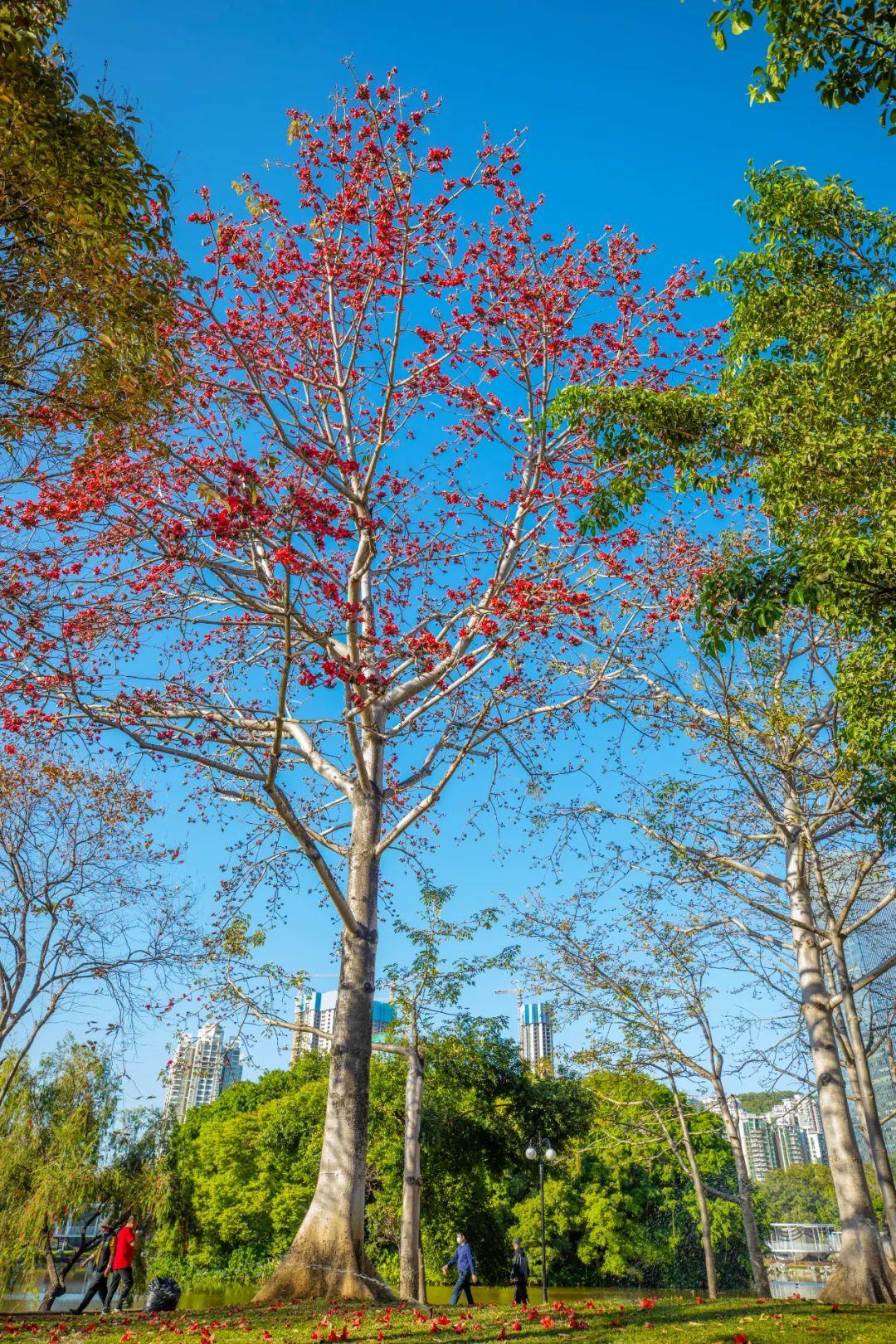 深圳各大公园,木棉花热烈盛开。